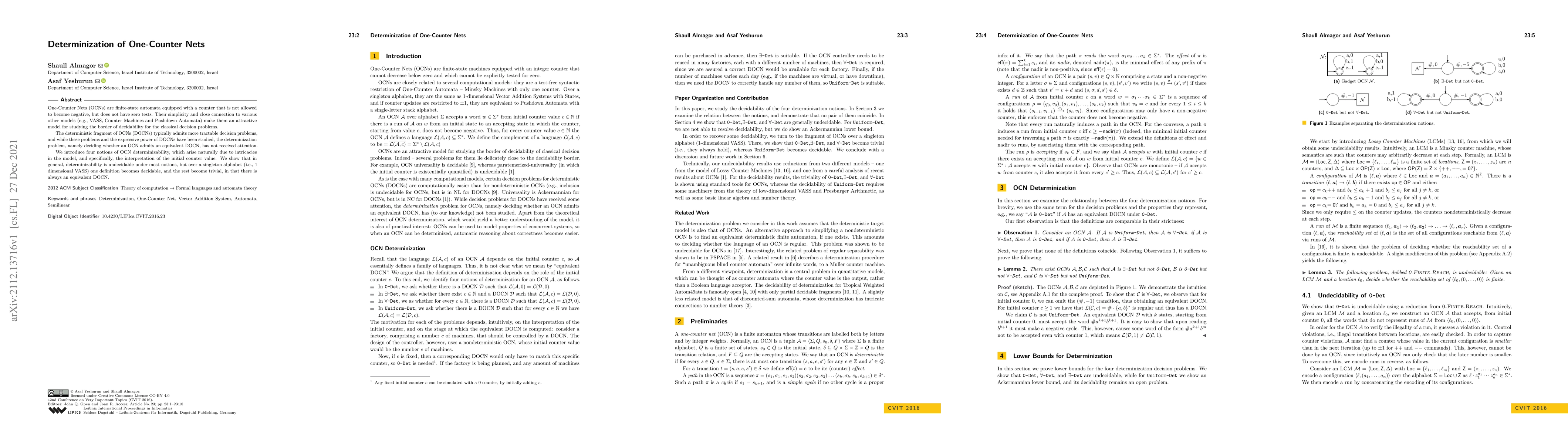 This paper explores the determinization of One-Counter Nets (OCNs), introducing four notions of determinizability. It finds that determinizability is generally undecidable, but becomes decidable under a singleton alphabet, where all OCNs have equivalent deterministic counterparts.