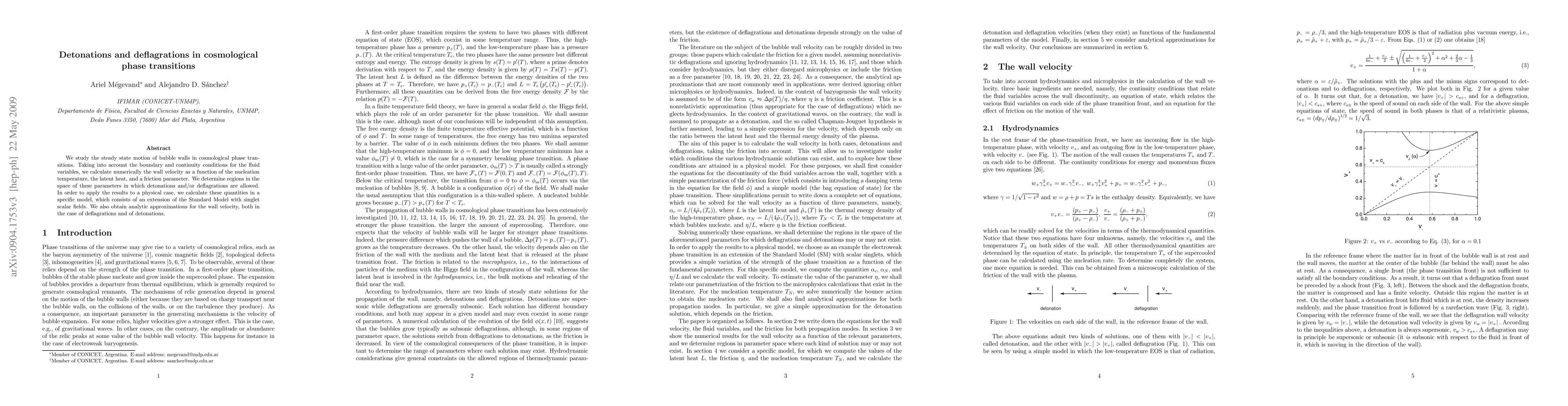 We study the steady state motion of bubble walls in cosmological phase transitions. Taking into account the boundary and continuity conditions for the fluid variables, we calculate numerically the wall velocity as a function of the nucleation temperature, the latent heat, and a friction parameter. We determine regions in the space of these parameters in which detonations and/or deflagrations are allowed. In order to apply the results to a physical case, we calculate these quantities in a specific model, which consists of an extension of the Standard Model with singlet scalar fields. We also obtain analytic approximations for the wall velocity, both in the case of deflagrations and of detonations.