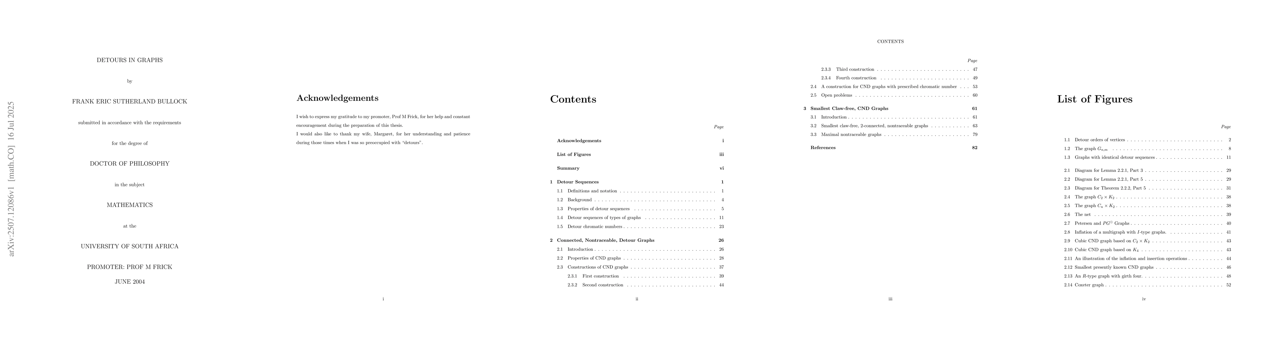 A detour in a graph is a longest path. This thesis is mainly about connected, non-traceable graphs with the property that each vertex is the start (or end) vertex of a detour. There are also related results on claw-free, 2-connected, non-traceable graphs, and maximal non-traceable graphs.