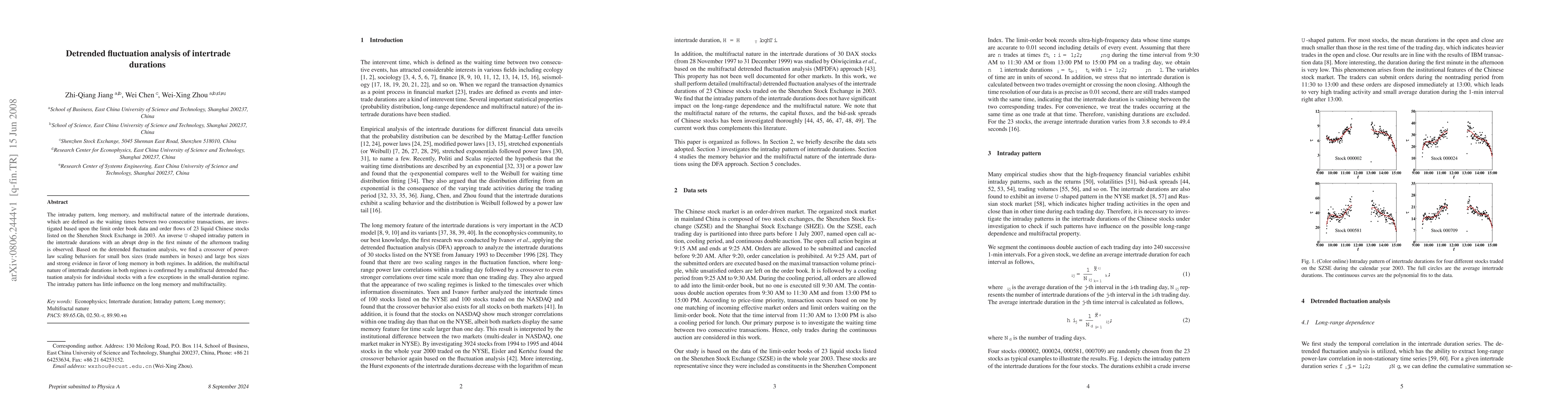 This study investigates the intraday patterns, long memory, and multifractal characteristics of intertrade durations in 23 liquid Chinese stocks using detrended fluctuation analysis, revealing an inverse U-shaped intraday pattern and long-memory behavior across different trading durations. The research confirms multifractal nature in most cases, with little impact from intraday patterns on these properties.