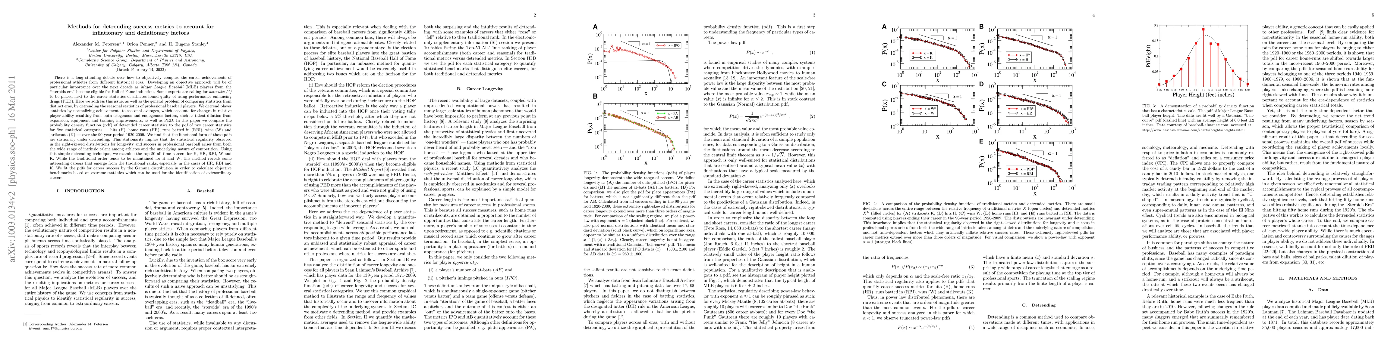 There is a long standing debate over how to objectively compare the career achievements of professional athletes from different historical eras. Developing an objective approach will be of particular importance over the next decade as Major League Baseball (MLB) players from the "steroids era" become eligible for Hall of Fame induction. Here we address this issue, as well as the general problem of comparing statistics from distinct eras, by detrending the seasonal statistics of professional baseball players. We detrend player statistics by normalizing achievements to seasonal averages, which accounts for changes in relative player ability resulting from both exogenous and endogenous factors, such as talent dilution from expansion, equipment and training improvements, as well as performance enhancing drugs (PED). In this paper we compare the probability density function (pdf) of detrended career statistics to the pdf of raw career statistics for five statistical categories -- hits (H), home runs (HR), runs batted in (RBI), wins (W) and strikeouts (K) -- over the 90-year period 1920-2009. We find that the functional form of these pdfs are stationary under detrending. This stationarity implies that the statistical regularity observed in the right-skewed distributions for longevity and success in professional baseball arises from both the wide range of intrinsic talent among athletes and the underlying nature of competition. Using this simple detrending technique, we examine the top 50 all-time careers for H, HR, RBI, W and K. We fit the pdfs for career success by the Gamma distribution in order to calculate objective benchmarks based on extreme statistics which can be used for the identification of extraordinary careers.