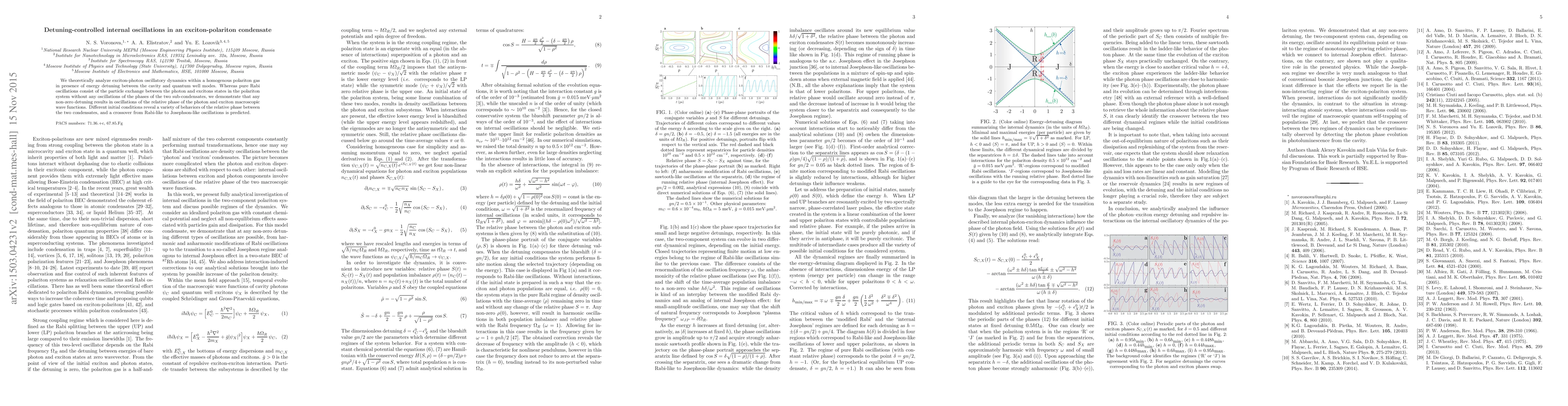 This paper theoretically investigates the oscillatory dynamics in an exciton-polariton condensate under energy detuning, showing that non-zero detuning induces oscillations in the relative phase between the photon and exciton sub-condensates, leading to a transition from Rabi-like to Josephson-like oscillations depending on initial conditions.