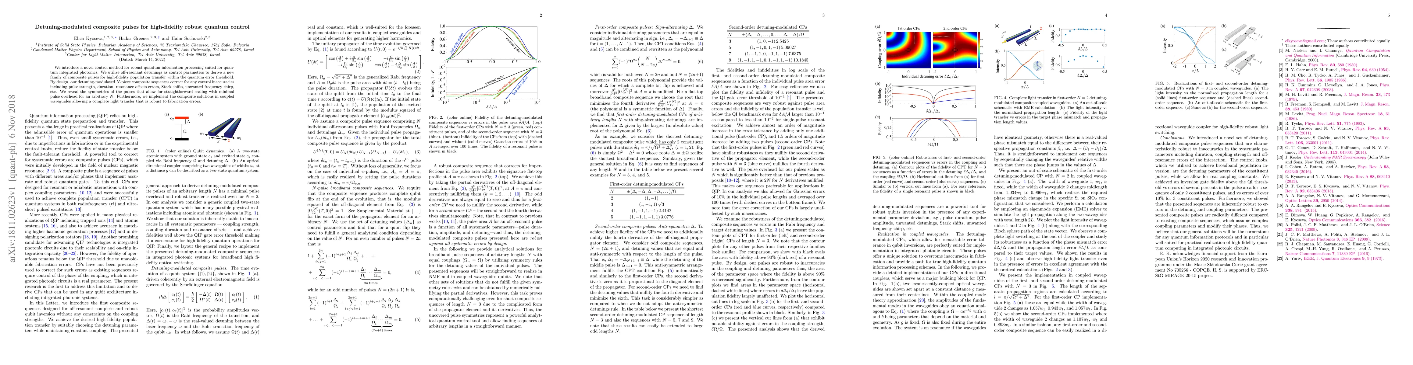 This paper presents a new method for robust quantum control using detuning-modulated composite pulses that ensure high-fidelity population transfer in quantum integrated photonics. The approach corrects for various control inaccuracies and demonstrates scalability for any sequence length with minimal overhead.