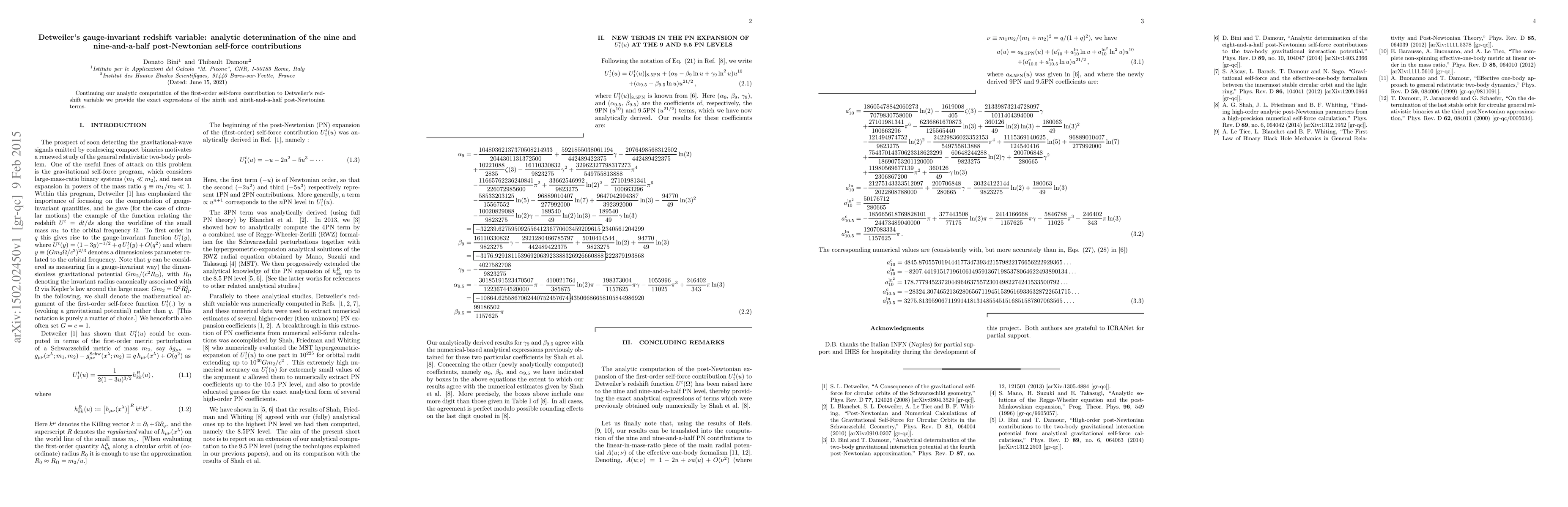 This paper presents the exact analytical expressions for the ninth and ninth-and-a-half post-Newtonian terms in Detweiler's gauge-invariant redshift variable, continuing the computation of the first-order self-force contributions. These contributions are crucial for understanding the dynamics of gravitational systems at high precision.