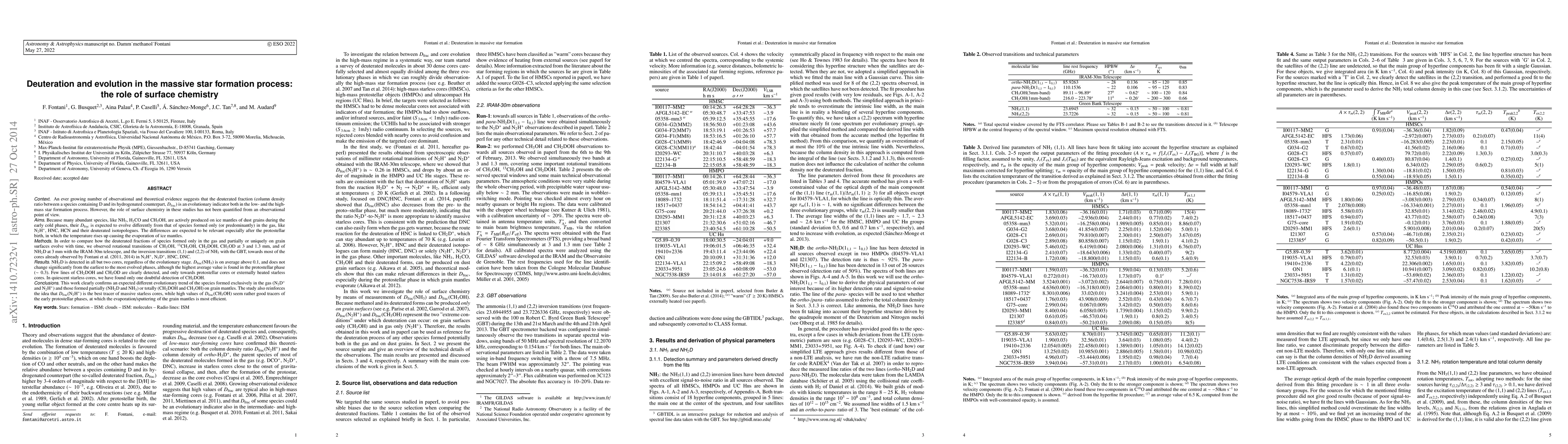This paper investigates the evolution of deuterated species in massive star formation, finding that deuterated fractions (Dfrac) serve as evolutionary indicators. Observations show that NH2D and NH3, formed partially or fully on grain surfaces, maintain higher Dfrac values compared to gas-phase species like N2D+ and N2H+. The study confirms different evolutionary trends for species formed in the gas versus on grain surfaces, highlighting Dfrac(N2H+) as a tracer for starless cores and Dfrac(CH3OH) for early protostellar phases.