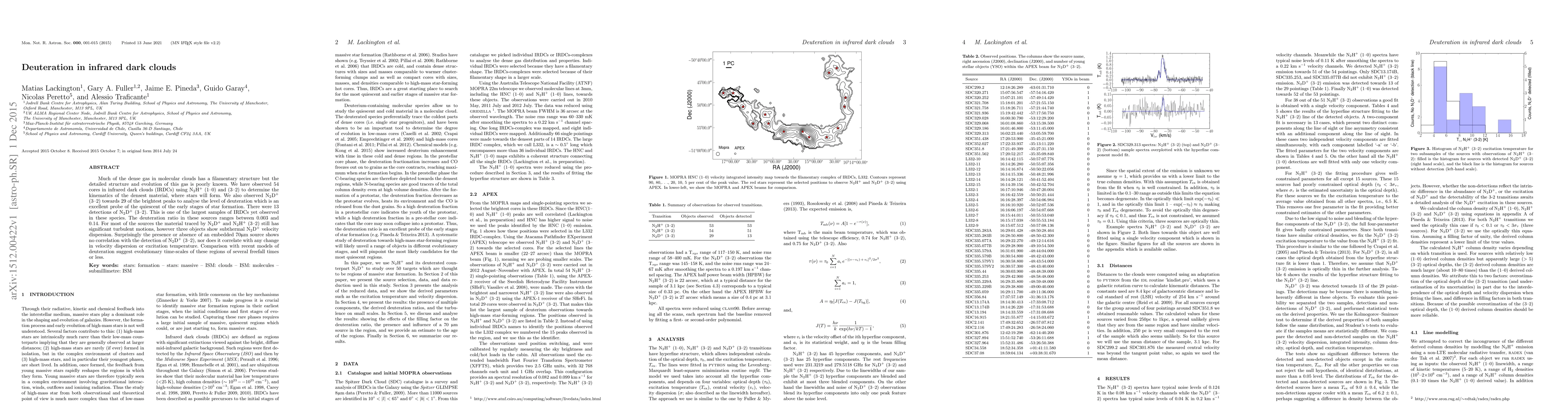 Researchers observed 54 infrared dark cloud cores to study dense gas structure and evolution, detecting significant deuteration ratios ranging from 0.003 to 0.14, suggesting early stages of star formation could occur within several free-fall times.