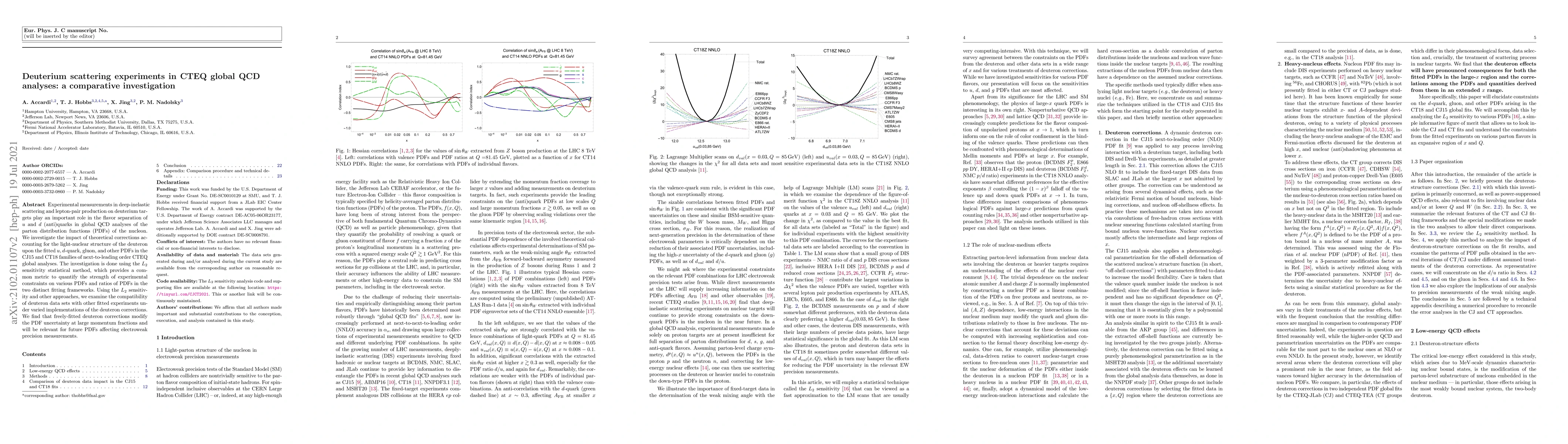 Experimental measurements in deep-inelastic scattering and lepton-pair production on deuterium targets play an important role in the flavor separation of $u$ and $d$ (anti)quarks in global QCD analyses of the parton distribution functions (PDFs) of the nucleon. We investigate the impact of theoretical corrections accounting for the light-nuclear structure of the deuteron upon the fitted $u, d$-quark, gluon, and other PDFs in the CJ15 and CT18 families of next-to-leading order CTEQ global analyses. The investigation is done using the $L_2$ sensitivity statistical method, which provides a common metric to quantify the strength of experimental constraints on various PDFs and ratios of PDFs in the two distinct fitting frameworks. Using the $L_2$ sensitivity and other approaches, we examine the compatibility of deuteron data sets with other fitted experiments under varied implementations of the deuteron corrections. We find that freely-fitted deuteron corrections modify the PDF uncertainty at large momentum fractions and will be relevant for future PDFs affecting electroweak precision measurements.