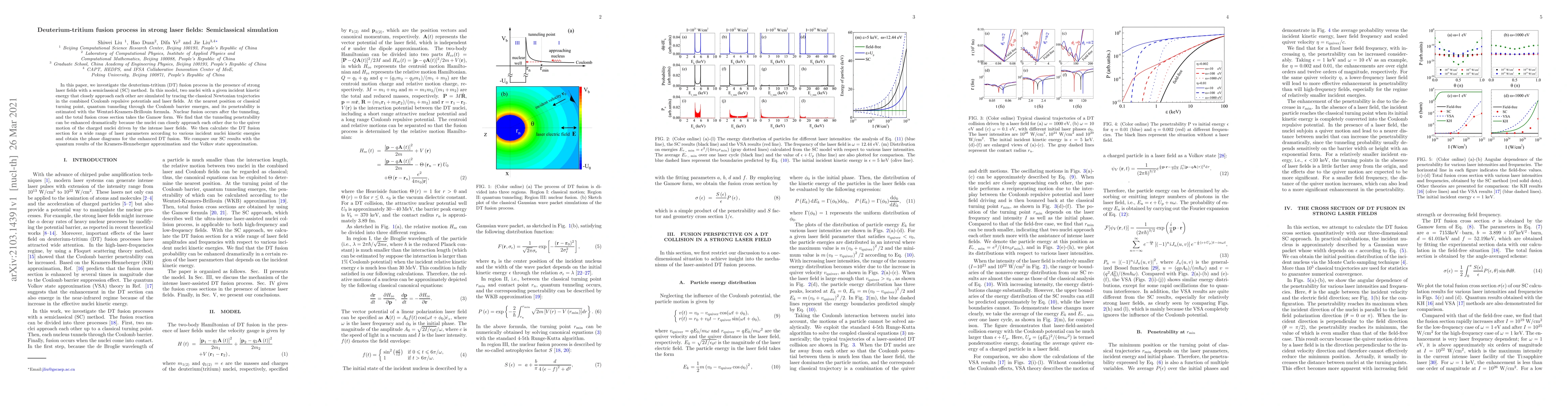 This paper uses a semiclassical method to simulate the deuterium-tritium fusion process in strong laser fields, finding that intense laser fields can enhance tunneling penetrability and thus significantly boost fusion cross sections. The study compares semiclassical results with quantum approximations to validate the model.