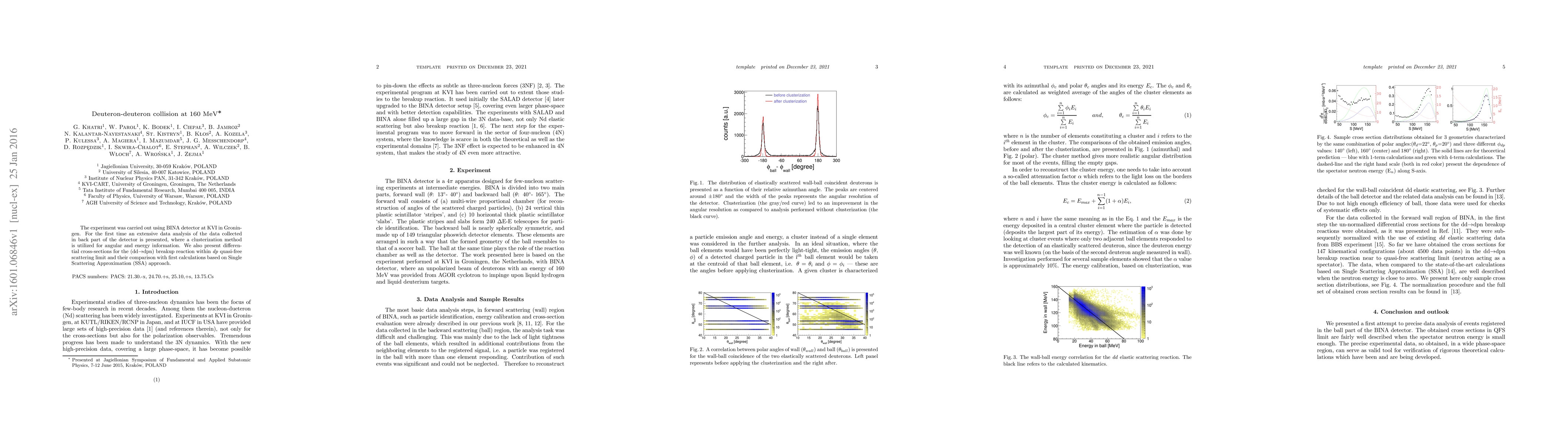 The experiment was carried out using BINA detector at KVI in Groningen. For the first time an extensive data analysis of the data collected in back part of the detector is presented, where a clusterization method is utilized for angular and energy information. We also present differential cross-sections for the (dd$\rightarrow$dpn) breakup reaction within \textit{dp} quasi-free scattering limit and their comparison with first calculations based on Single Scattering Approximation (SSA) approach.