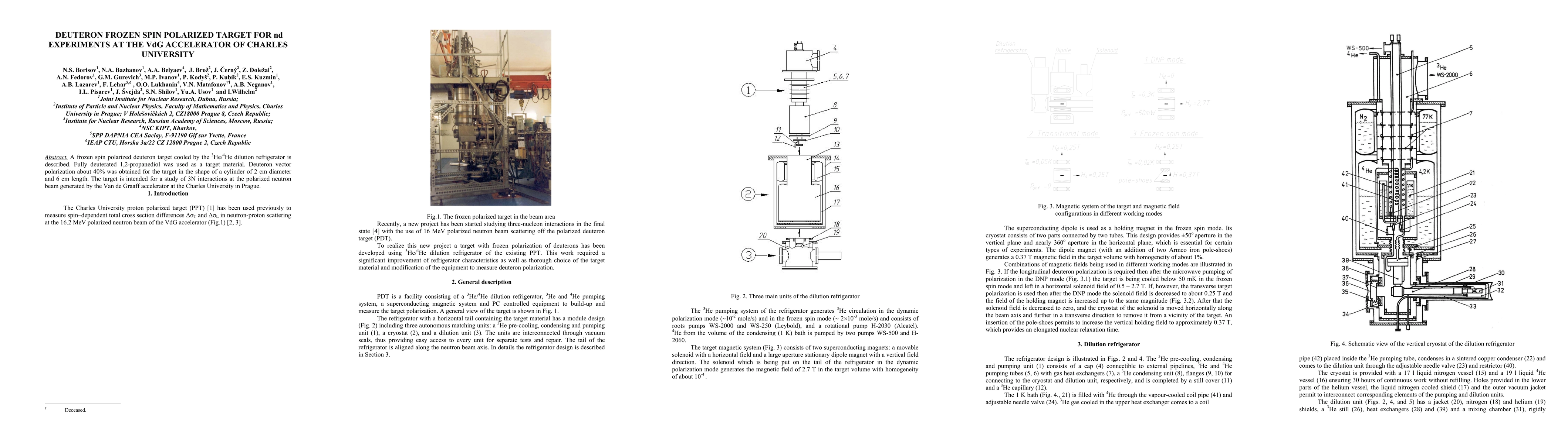 A frozen spin polarized deuteron target cooled by the 3He/4He dilution refrigerator is described. Fully deuterated 1,2-propanediol was used as a target material. Deuteron vector polarization about 40% was obtained for the target in the shape of a cylinder of 2 cm diameter and 6 cm length. The target is intended for a study of 3N interactions at the polarized neutron beam generated by the Van de Graaff accelerator at the Charles University in Prague.
