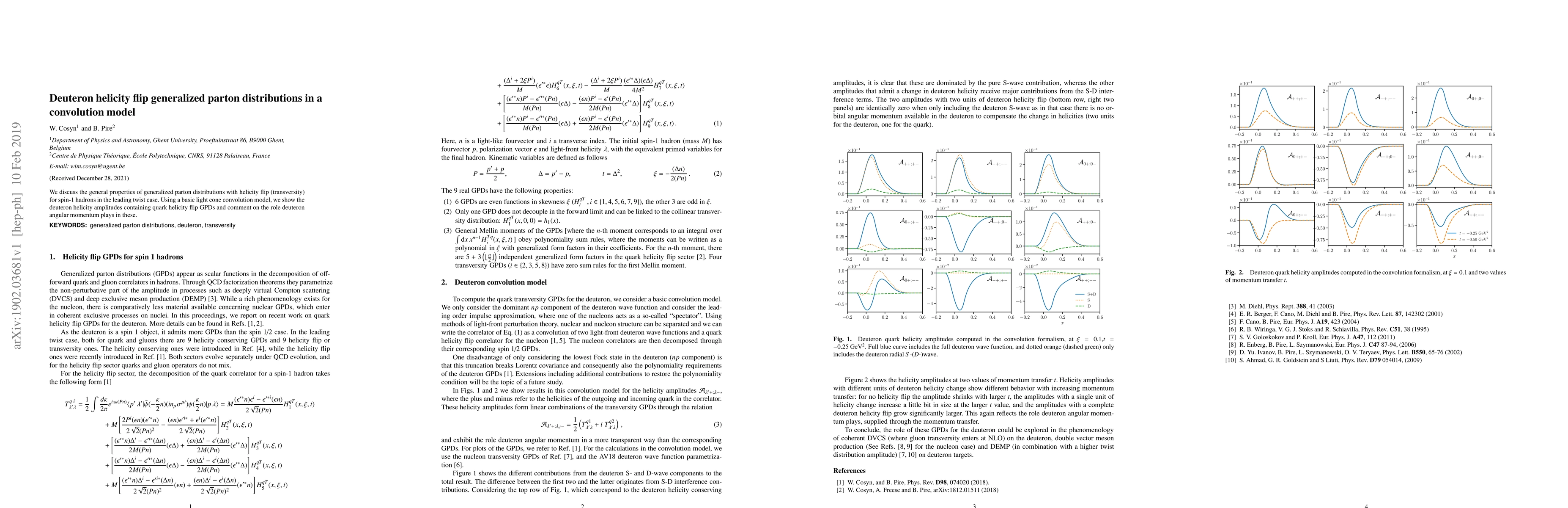 Summary: This paper explores generalized parton distributions (GPDs) with helicity flip for spin-1 hadrons, specifically focusing on the deuteron. It employs a light cone convolution model to analyze deuteron helicity amplitudes and discusses the influence of deuteron angular momentum on these GPDs.