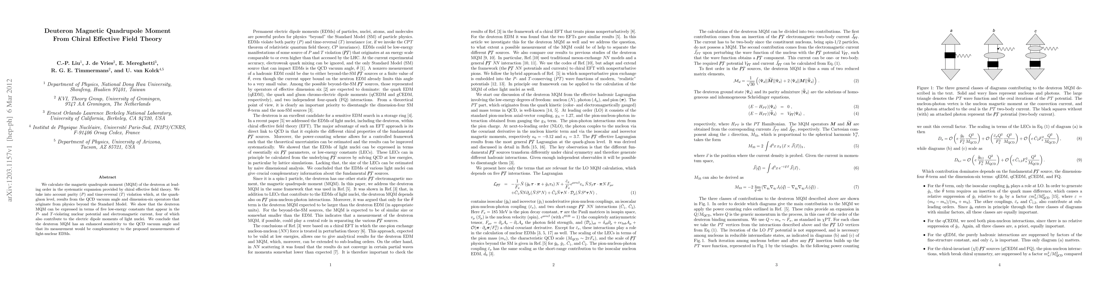 Researchers calculate the magnetic quadrupole moment of the deuteron using chiral effective field theory, finding it can reveal insights into the QCD vacuum angle and be measured in conjunction with light-nuclear EDMs.