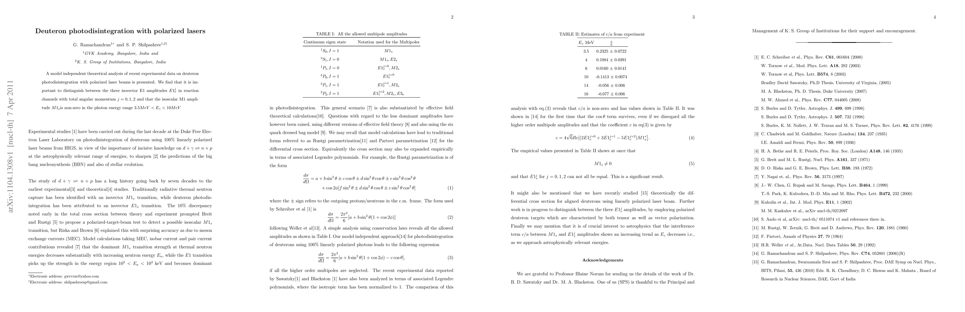 A model independent theoretical analysis of recent experimental data on deuteron photodisintegration with polarized laser beams is presented. We find that it is important to distinguish between the three isovector E1 amplitudes $E1_v^j$ in reaction channels with total angular momentum $j=0,1,2$ and that the isoscalar M1 amplitude $M1_s$ is non-zero in the photon energy range $3.5 MeV < E_\gamma < 10 MeV$