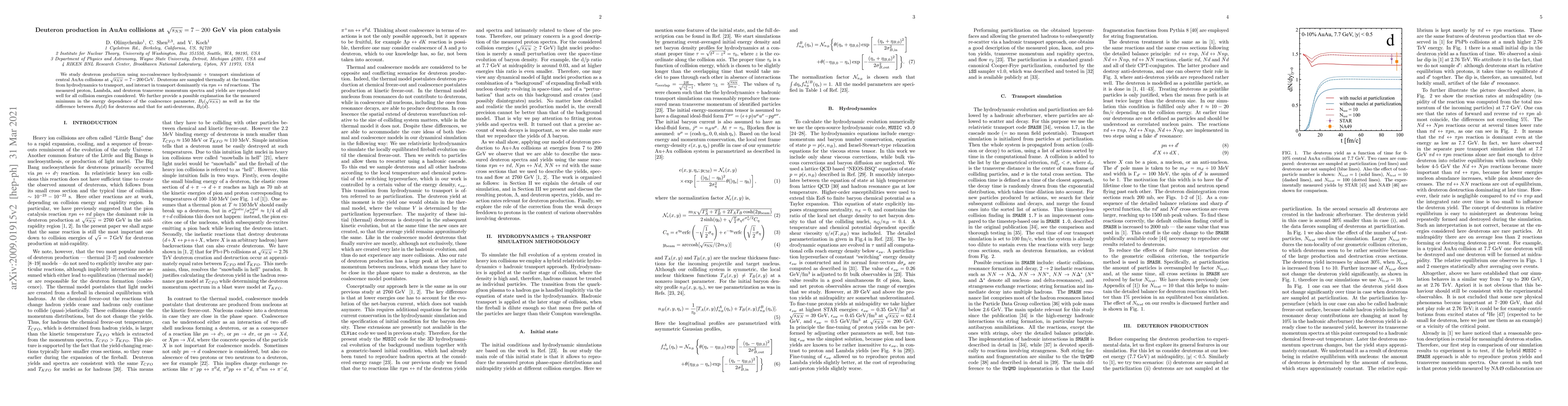 This study uses hydrodynamic + transport simulations to explain deuteron production in AuAu collisions at 7-200 GeV. It successfully replicates proton, Lambda, and deuteron spectra and yields, and offers insights into the minimum in $B_2(sqrt{s_{NN}})$ and the difference between $B_2(d)$ and $B_2(\bar{d})$.