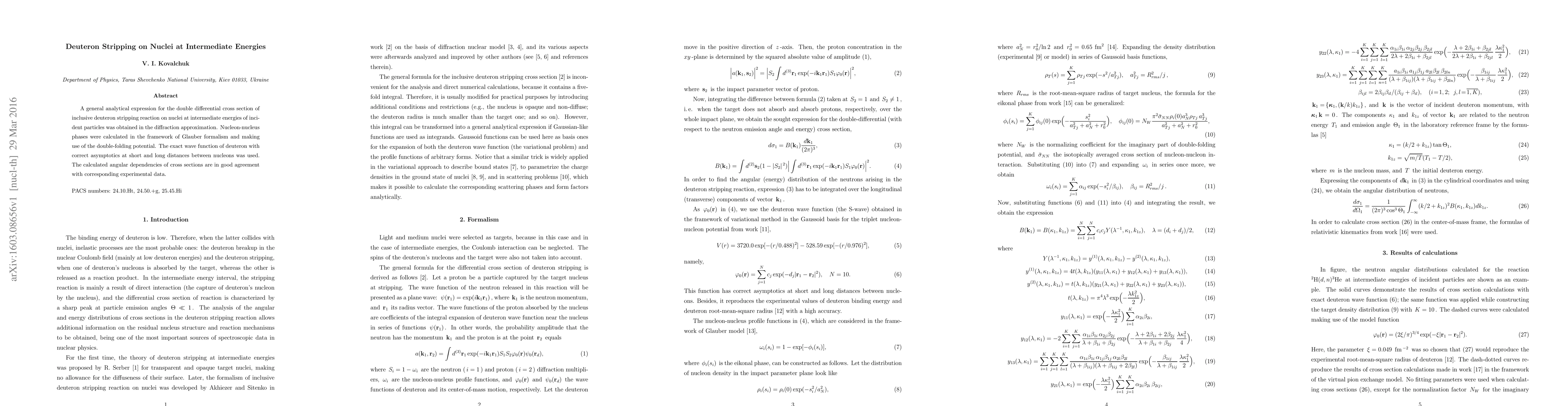 This work is novel in its use of a detailed model for the deuteron stripping reaction, which allows for more accurate calculations and better understanding of the process.