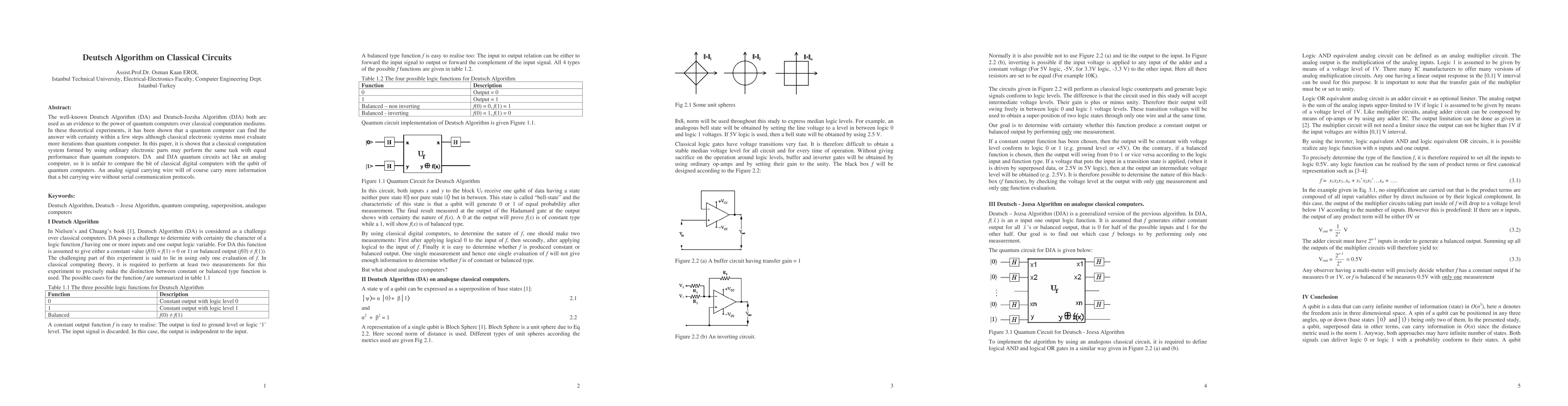 This paper demonstrates that classical electronic circuits can achieve the same performance as the Deutsch Algorithm and Deutsch-Jozsa Algorithm, traditionally seen as quantum computing advantages, by utilizing analog signals. It argues that comparing classical digital bits to quantum qubits is misleading due to the higher information capacity of analog signals.