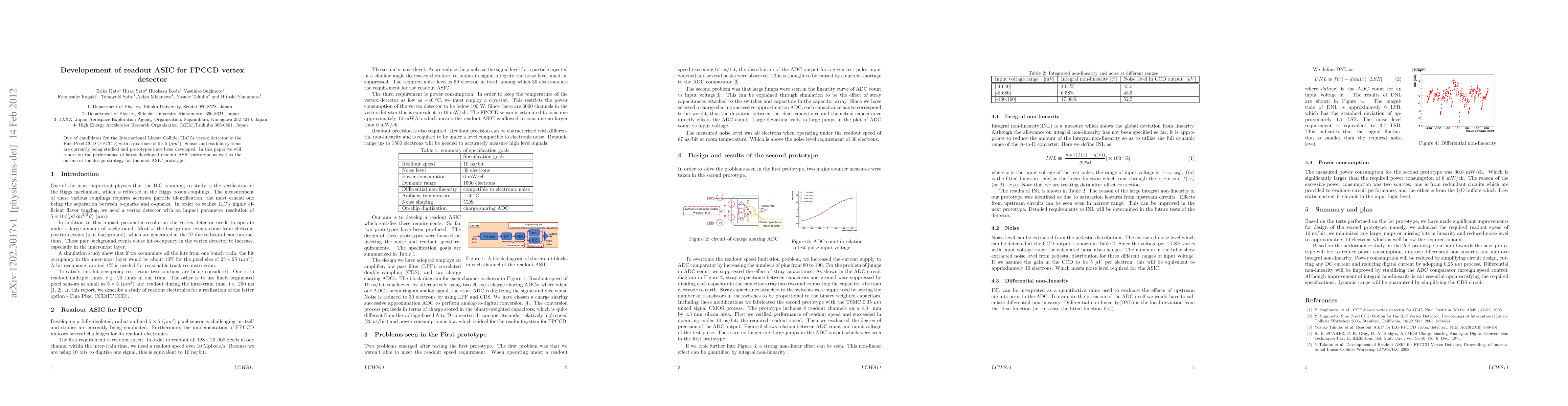 A new readout ASIC prototype for the Fine Pixel CCD (FPCCD) vertex detector in the International Linear Collider (ILC) has been developed and tested, improving performance and laying the groundwork for future design improvements.