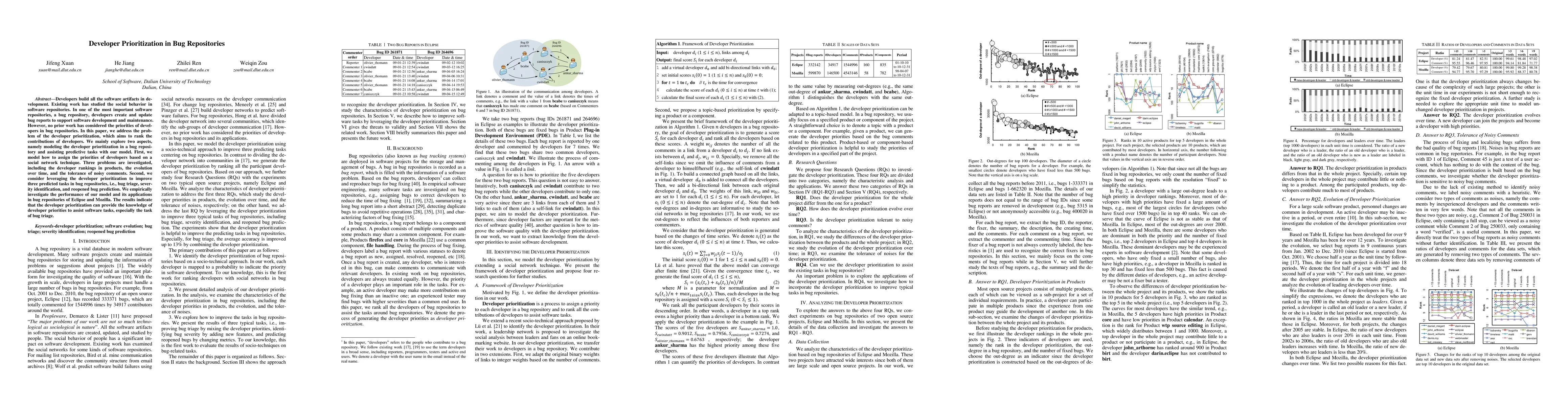 This paper proposes a method to prioritize developers in bug repositories based on social network techniques, aiming to rank their contributions. The model is tested to improve predictive tasks such as bug triage, severity identification, and reopened bug prediction, showing promising results in bug repositories of Eclipse and Mozilla.
