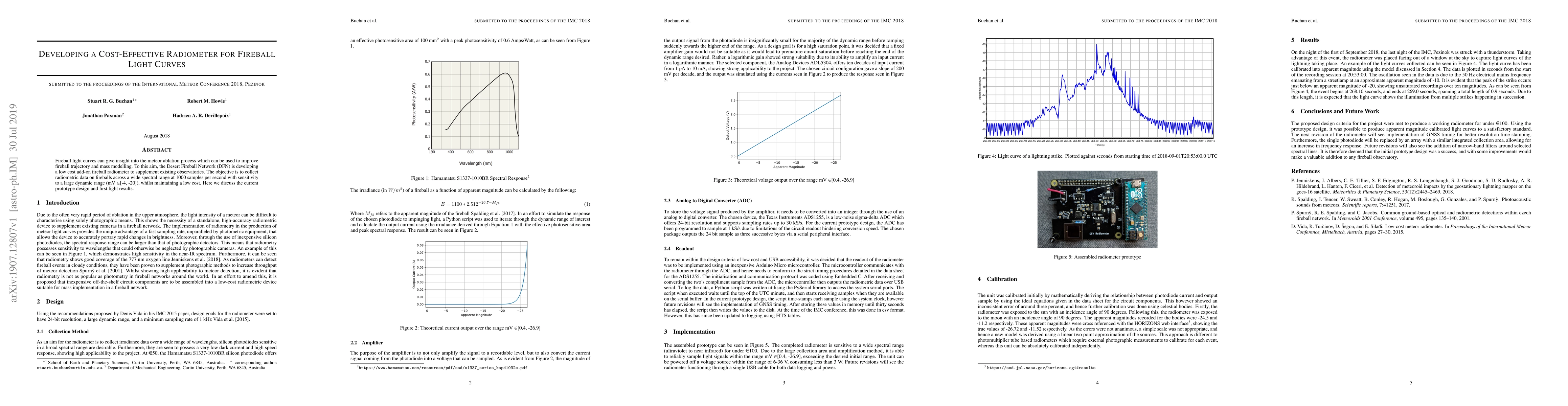 Fireball light curves can give insight into the meteor ablation process which can be used to improve fireball trajectory and mass modelling. To this aim, the Desert Fireball Network (DFN) is developing a low cost add-on fireball radiometer to supplement existing observatories. The objective is to collect radiometric data on fireballs across a wide spectral range at 1000 samples per second with sensitivity to a large dynamic range (mV $\in$[-4, -20]), whilst maintaining a low cost. Here we discuss the current prototype design and first light results.