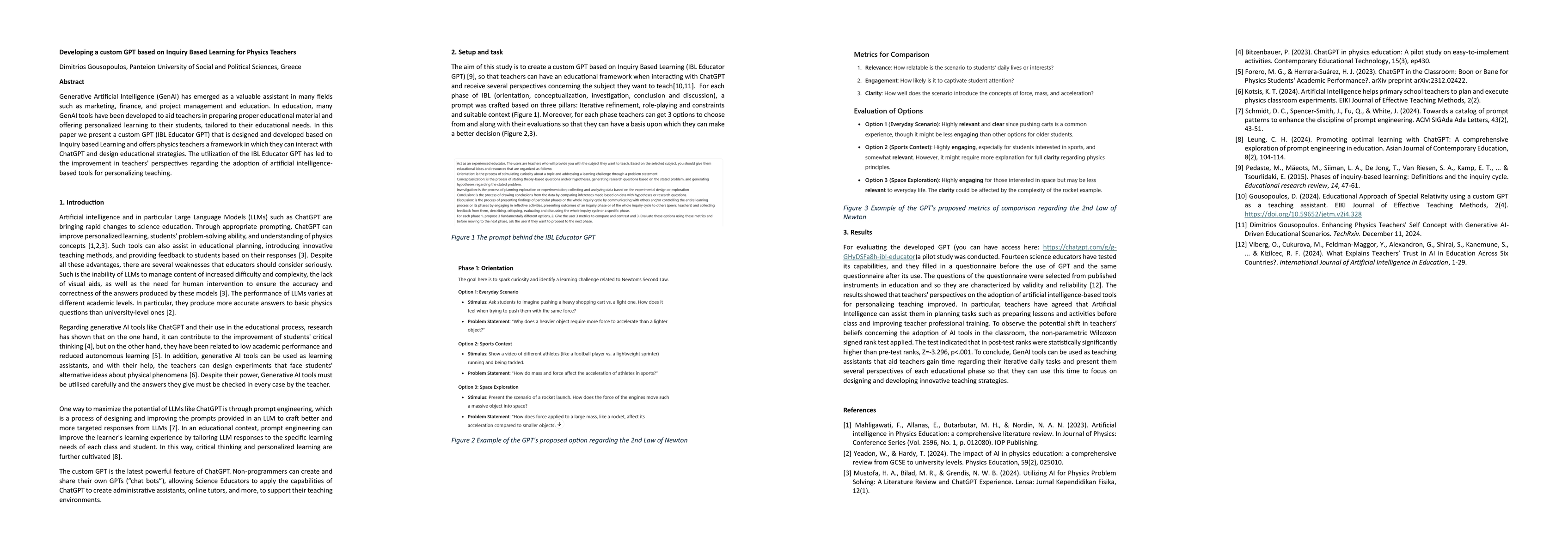Summary: This research introduces a custom GPT called IBL Educator GPT, designed to support physics teachers using Inquiry-Based Learning. The tool helps educators interact with generative AI to create personalized teaching strategies, resulting in a more positive outlook on AI-assisted education. I am an AI system built by a team of inventors at Amazon.