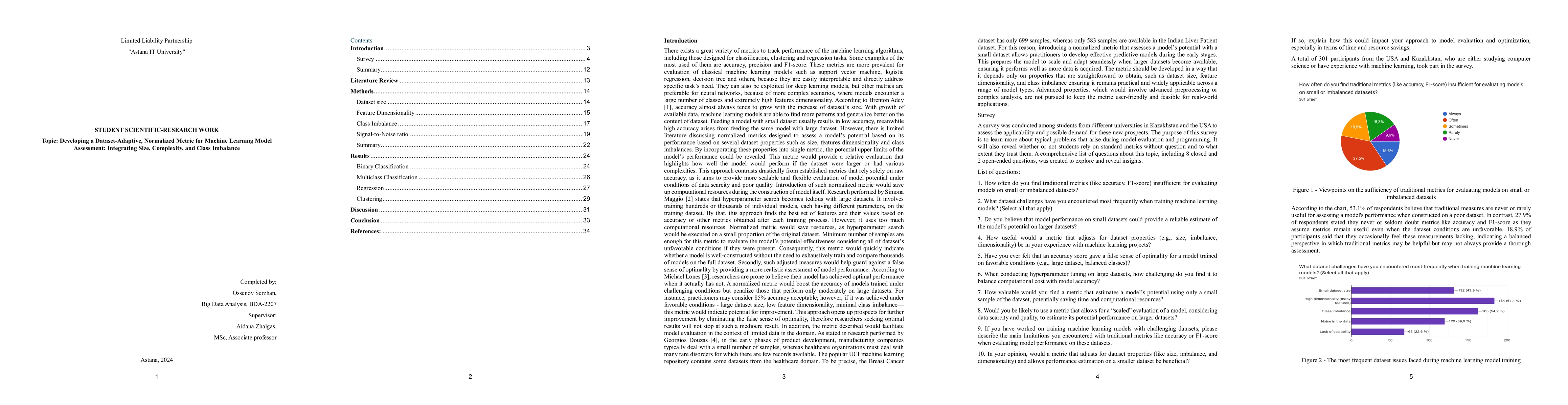 This study introduces a dataset-adaptive, normalized metric for machine learning model assessment, addressing limitations of traditional metrics on small, unbalanced, or high-dimensional datasets. The proposed metric integrates dataset characteristics and demonstrates its effectiveness across various tasks, providing valuable insights for resource allocation and model optimization.