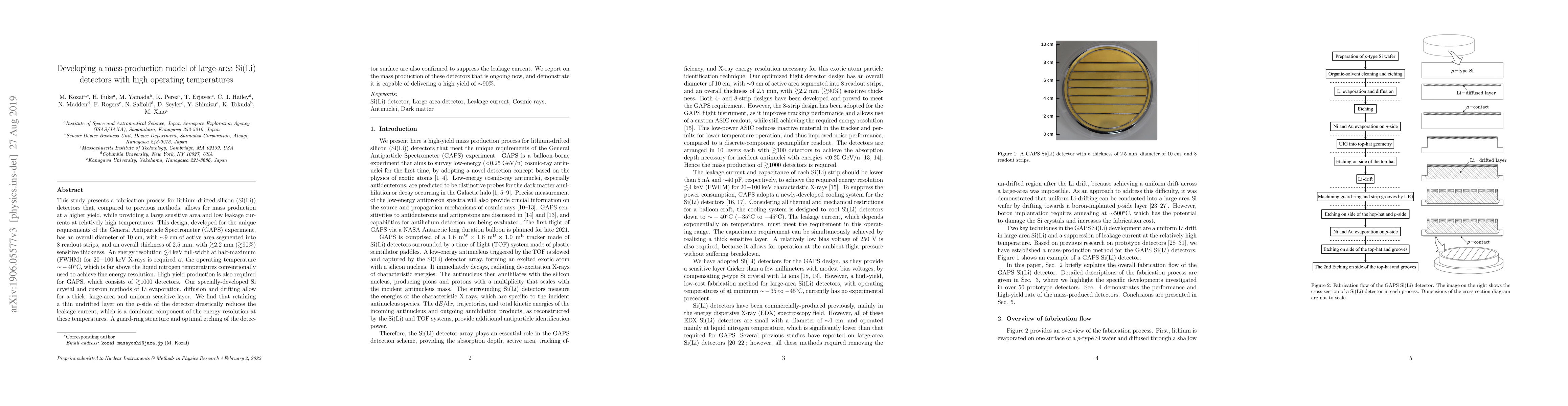 This study presents a fabrication process for lithium-drifted silicon (Si(Li)) detectors that, compared to previous methods, allows for mass production at a higher yield, while providing a large sensitive area and low leakage currents at relatively high temperatures. This design, developed for the unique requirements of the General Antiparticle Spectrometer (GAPS) experiment, has an overall diameter of 10 cm, with ~9 cm of active area segmented into 8 readout strips, and an overall thickness of 2.5 mm, with $\gtrsim$2.2 mm ($\gtrsim$90%) sensitive thickness. An energy resolution $\lesssim$4 keV full-width at half-maximum (FWHM) for 20-100 keV X-rays is required at the operating temperature ~-40C, which is far above the liquid nitrogen temperatures conventionally used to achieve fine energy resolution. High-yield production is also required for GAPS, which consists of $\gtrsim$1000 detectors. Our specially-developed Si crystal and custom methods of Li evaporation, diffusion and drifting allow for a thick, large-area and uniform sensitive layer. We find that retaining a thin undrifted layer on the p-side of the detector drastically reduces the leakage current, which is a dominant component of the energy resolution at these temperatures. A guard-ring structure and optimal etching of the detector surface are also confirmed to suppress the leakage current. We report on the mass production of these detectors that is ongoing now, and demonstrate it is capable of delivering a high yield of ~90%.