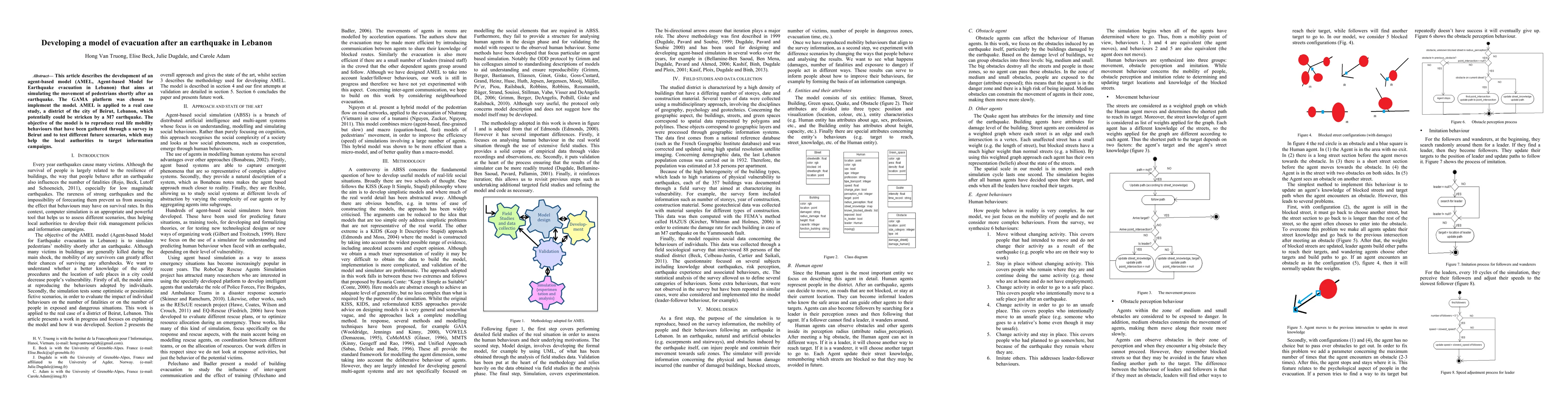 The research used an agent-based model (AMEL) to simulate pedestrian evacuation after an earthquake in Lebanon.