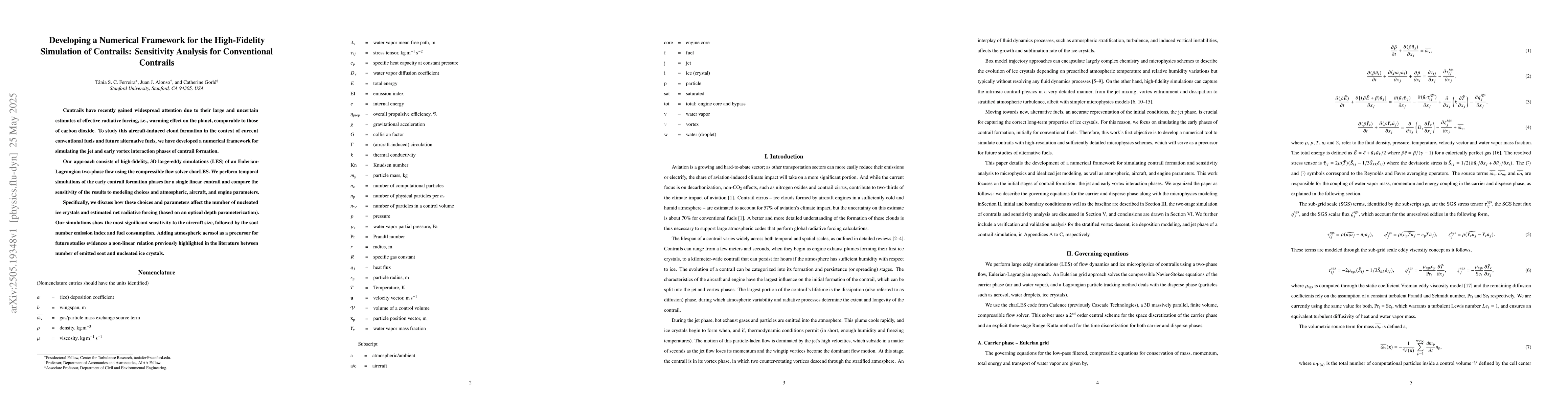 Development of a numerical framework using charLES for high-fidelity simulation of contrail formation phases, enabling sensitivity analysis for different modeling choices and parameters.