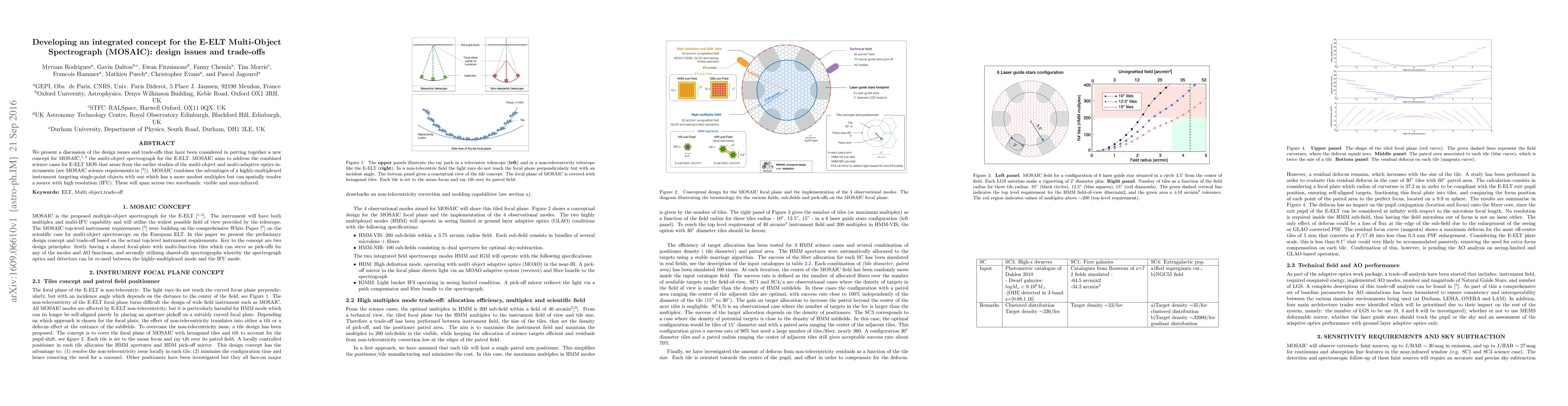 We present a discussion of the design issues and trade-offs that have been considered in putting together a new concept for MOSAIC, the multi-object spectrograph for the E-ELT. MOSAIC aims to address the combined science cases for E-ELT MOS that arose from the earlier studies of the multi-object and multi-adaptive optics instruments. MOSAIC combines the advantages of a highly-multiplexed instrument targeting single-point objects with one which has a more modest multiplex but can spatially resolve a source with high resolution (IFU). These will span across two wavebands: visible and near-infrared.