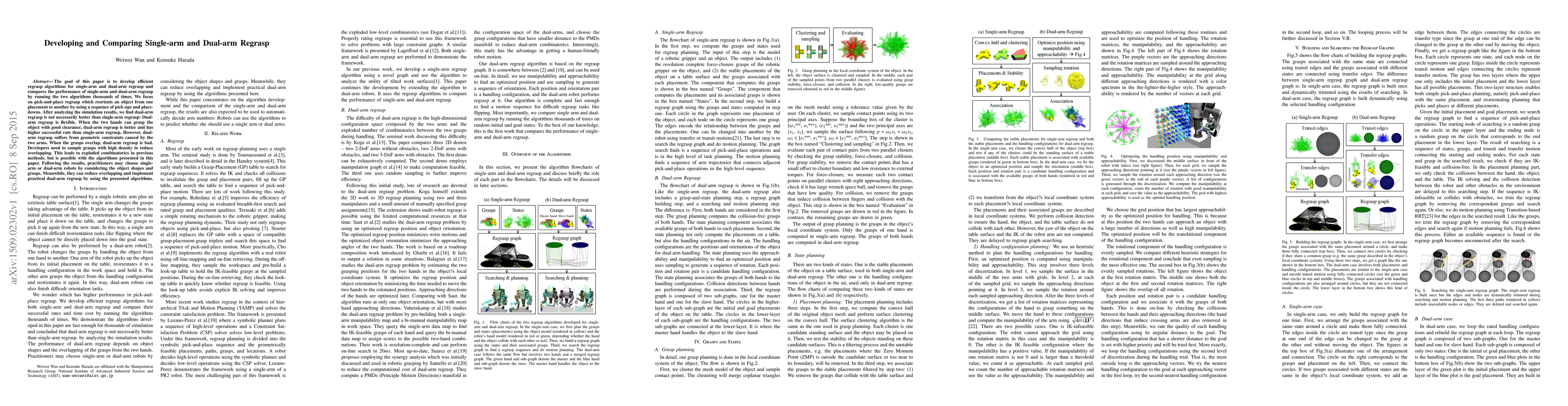 The research developed efficient algorithms for single-arm and dual-arm regrasp planning, utilizing a combination of motion planning and grasp synthesis techniques.