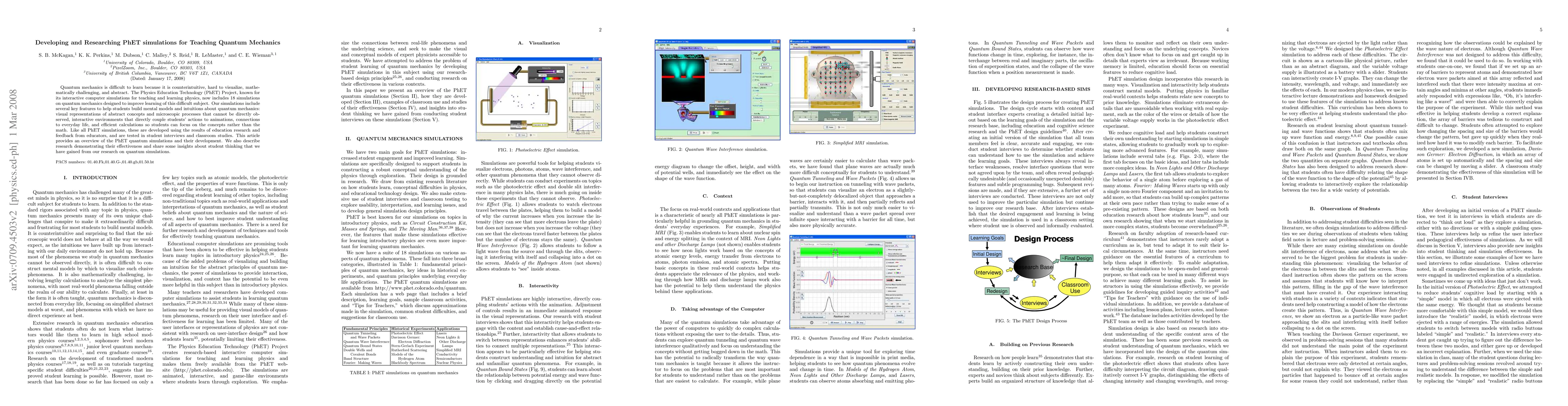 The PhET Project has developed 18 interactive simulations to enhance quantum mechanics education, featuring visual representations, interactive environments, and connections to everyday life. Research indicates these simulations effectively improve student understanding and provide insights into student thinking.