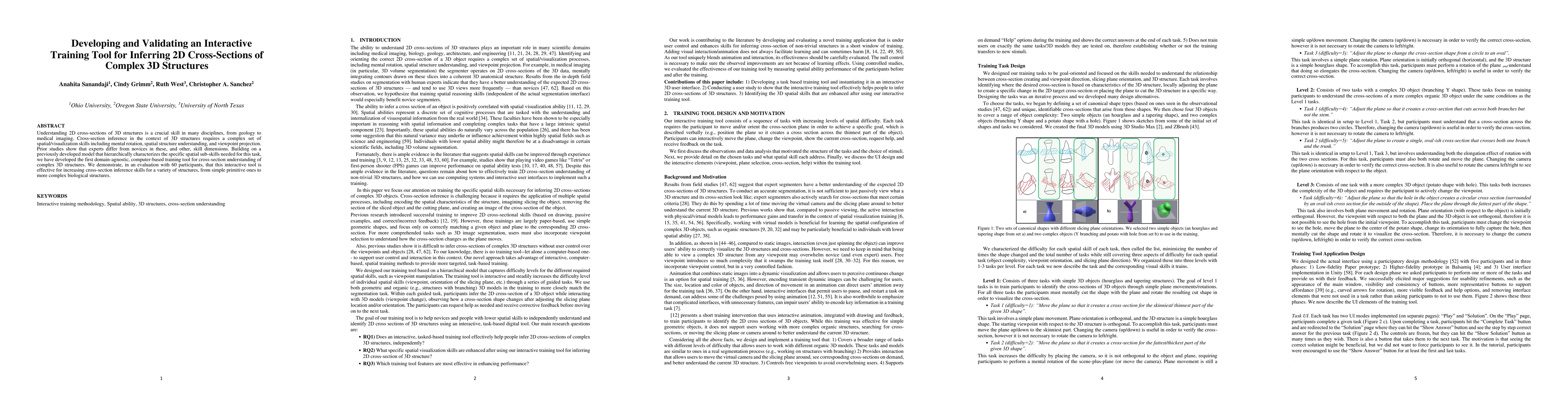 This paper develops and validates an interactive training tool to enhance users' skills in inferring 2D cross-sections from complex 3D structures. The evaluation with 60 participants shows that the tool effectively improves cross-section inference skills across various structures.