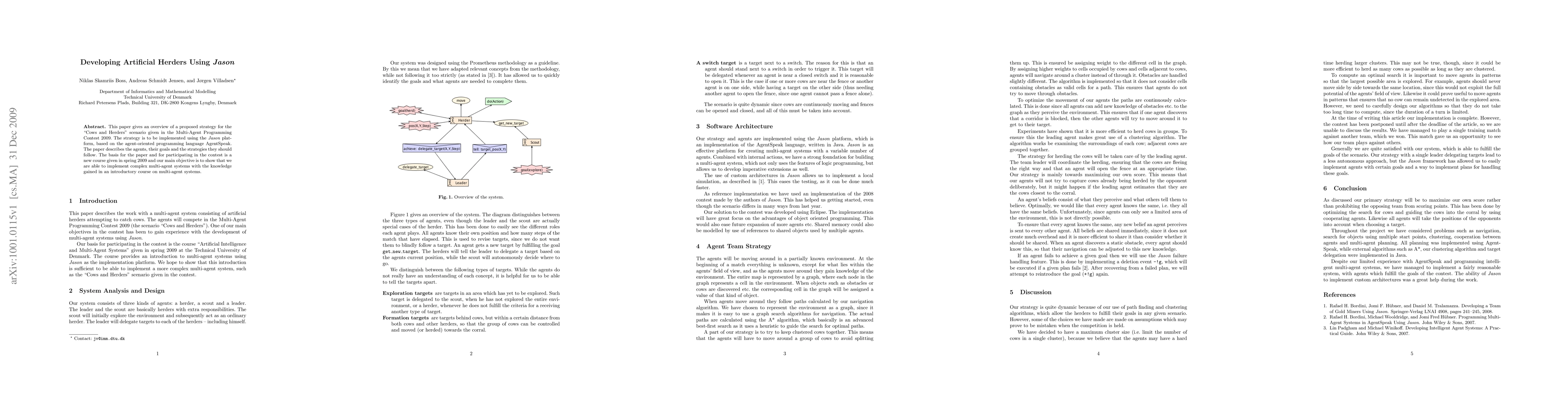 This paper gives an overview of a proposed strategy for the "Cows and Herders" scenario given in the Multi-Agent Programming Contest 2009. The strategy is to be implemented using the Jason platform, based on the agent-oriented programming language Agent-Speak. The paper describes the agents, their goals and the strategies they should follow. The basis for the paper and for participating in the contest is a new course given in spring 2009 and our main objective is to show that we are able to implement complex multi-agent systems with the knowledge gained in an introductory course on multi-agent systems.