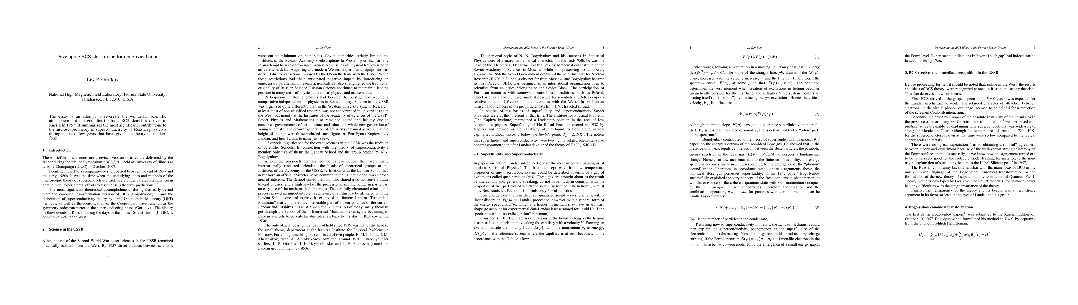 The essay is an attempt to re-create the wonderful scientific atmosphere that emerged after the basic BCS ideas first arrived in Russia in 1957. It summarizes the most significant contributions to the microscopic theory of superconductivity by Russian physicists during the next few years that have given the theory its modern form.