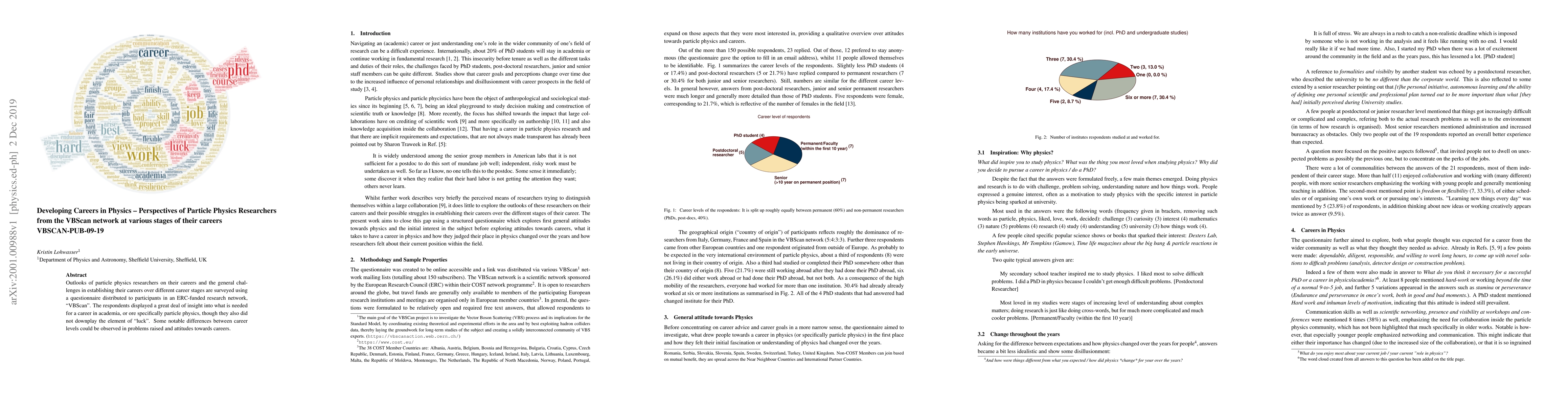 This study surveys particle physics researchers' perspectives on career challenges across different stages, revealing insights on academia requirements, though acknowledging the role of luck. Differences in problems raised and attitudes were noted among various career levels.