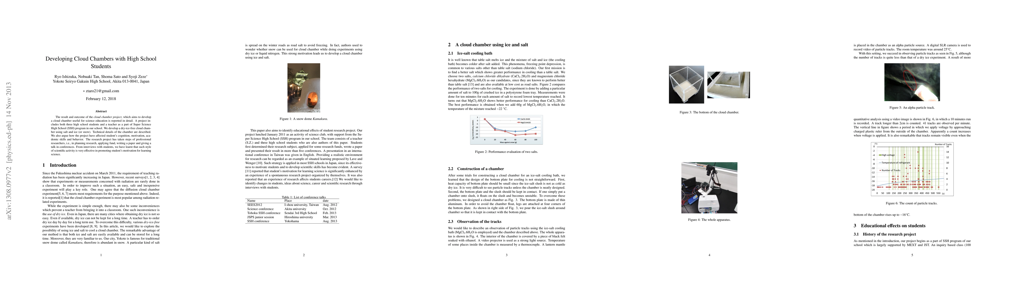 This paper details a cloud chamber project involving high school students and a teacher, focusing on developing a dry-ice-free chamber using salt and ice. The project enhances students' cognition, motivation, and academic skills, demonstrating the effectiveness of engaging students in scientific activities.