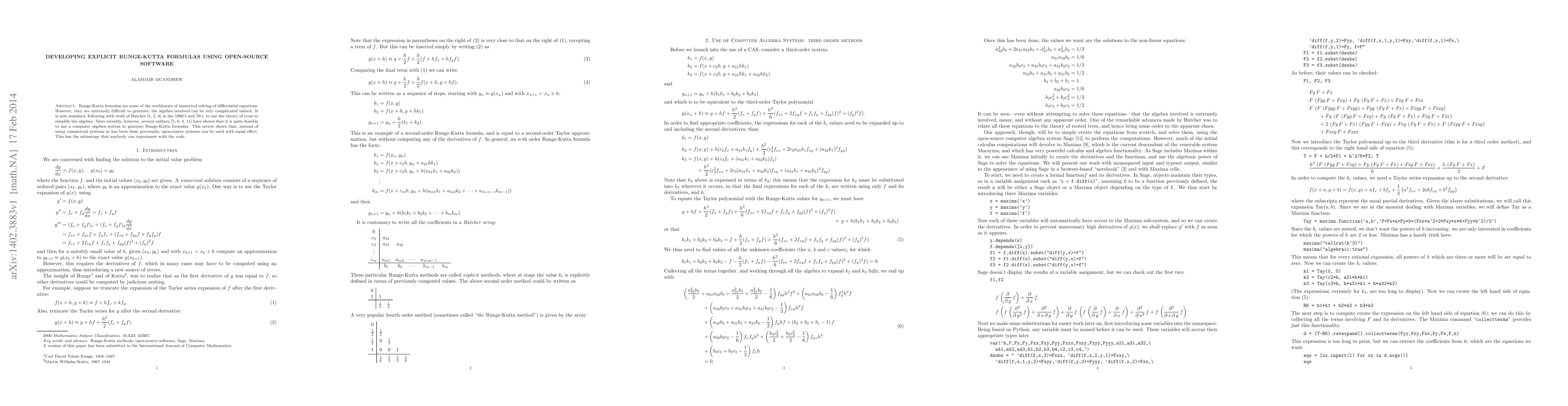 This paper explores the generation of explicit Runge-Kutta formulas using open-source software, demonstrating that these tools can be as effective as commercial systems, allowing broader experimentation and accessibility.