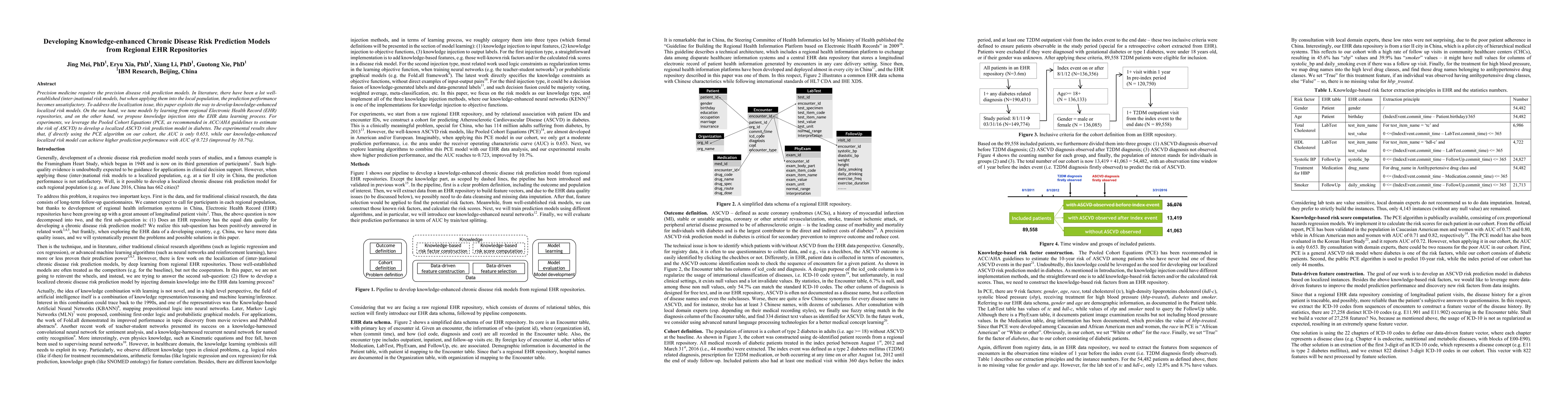This paper develops knowledge-enhanced chronic disease risk prediction models using regional Electronic Health Record (EHR) data, achieving better localization and performance than existing national models. The improved model, applying Pooled Cohort Equations for ASCVD risk in diabetes, shows a 10.7% increase in AUC, from 0.653 to 0.723.