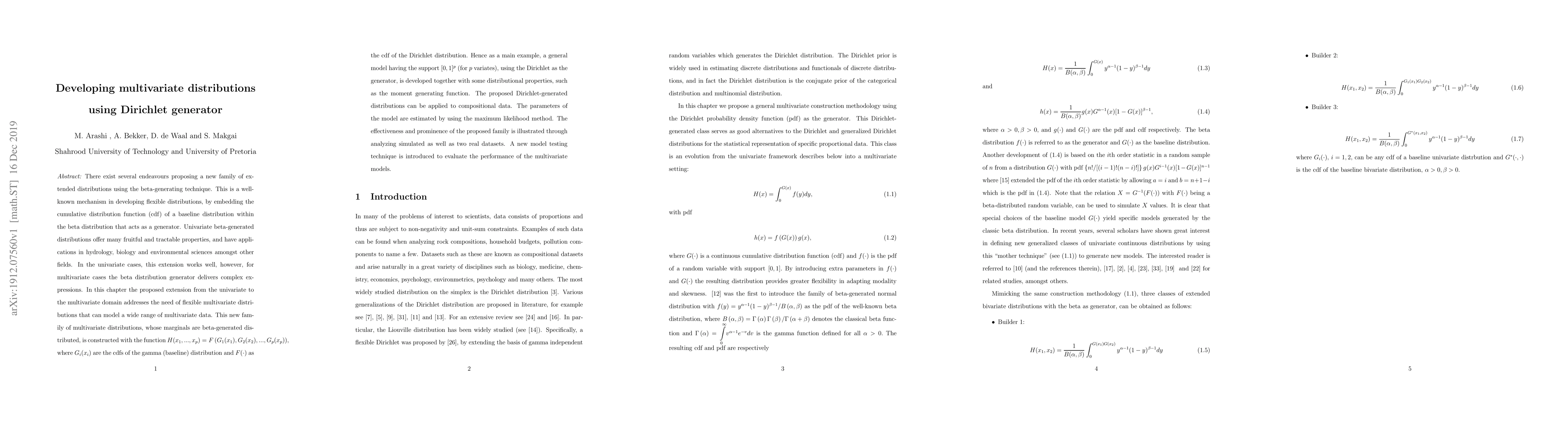 This paper proposes a new family of multivariate distributions generated using the Dirichlet distribution as a generator, extending the beta-generating technique from univariate to multivariate cases. The model, with marginals based on beta-generated distributions, is shown to be flexible and applicable to compositional data, with parameters estimated via maximum likelihood. The effectiveness of the proposed model is demonstrated through simulations and analysis of real datasets.