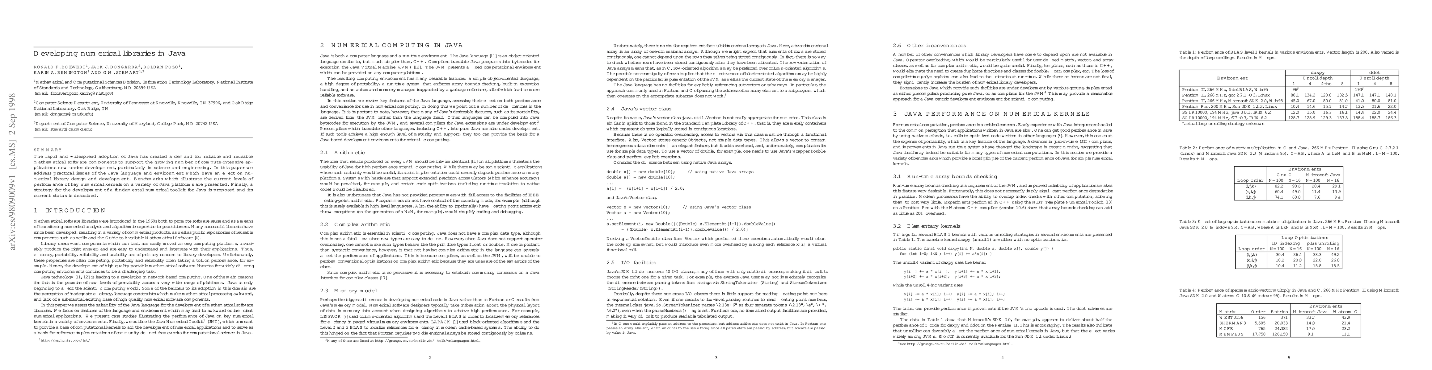 This paper addresses practical issues of Java for numerical library design, presents benchmarks on performance of key kernels, and proposes a strategy for developing a fundamental toolkit for Java.