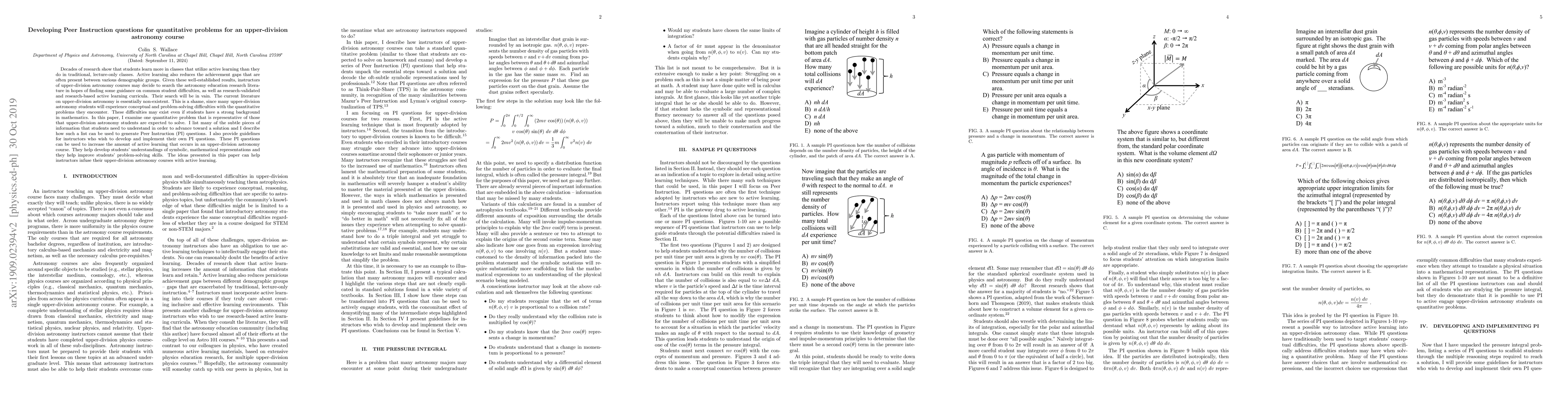 This paper explores the development of Peer Instruction questions for quantitative problems in upper-division astronomy courses, highlighting the lack of existing literature in this area. It provides guidelines for creating PI questions to enhance active learning, improve problem-solving skills, and address conceptual difficulties among students.