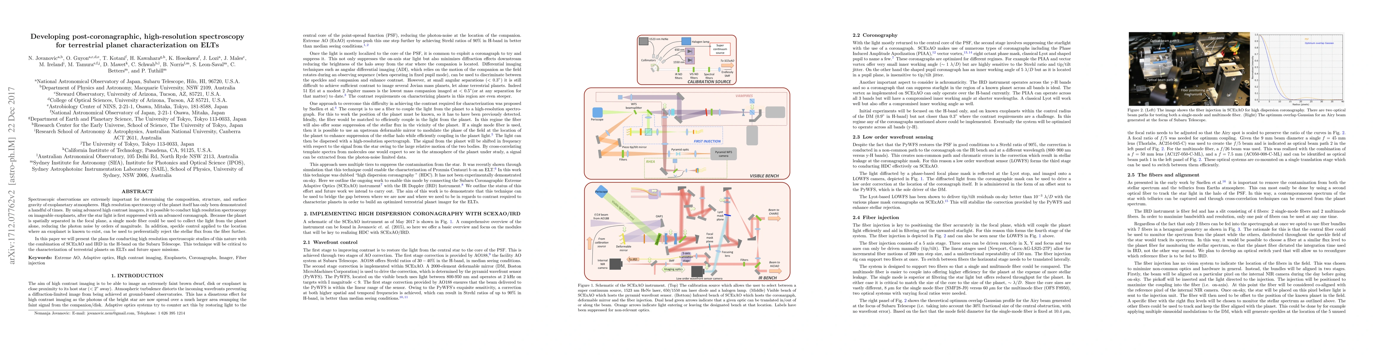 This paper outlines plans for high-resolution spectroscopy of terrestrial exoplanets using advanced high contrast imagers and coronagraphs on the Subaru Telescope. The proposed method aims to suppress starlight and collect planet-specific light for detailed atmospheric characterization.