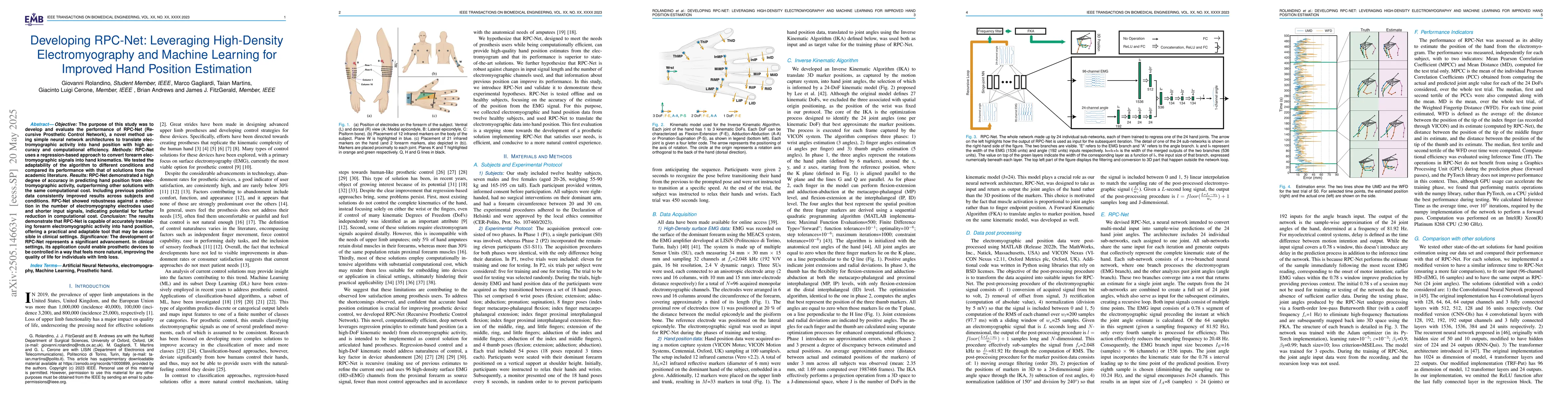 The development of RPC-Net, a computationally efficient neural network for translating EMG signals into hand kinematics.