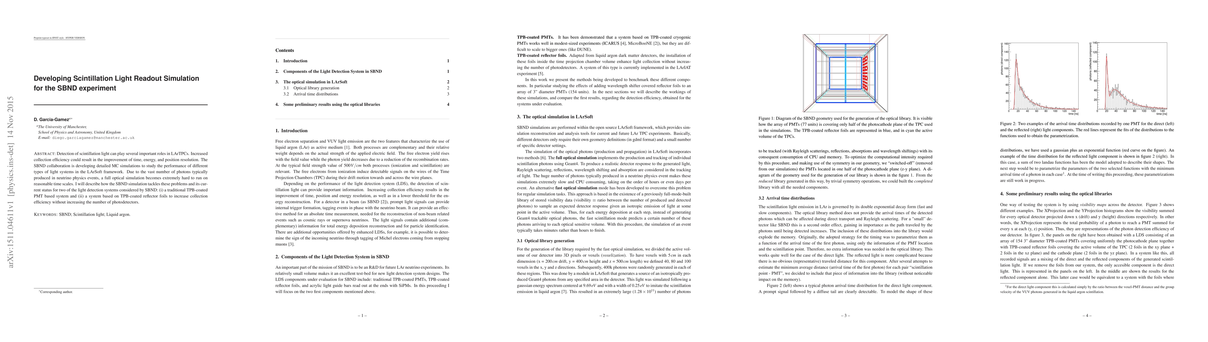 This paper develops a scintillation light readout simulation for the SBND experiment to improve time, energy, and position resolution. It tackles the challenge of simulating vast numbers of photons in neutrino physics events using two different light detection systems.