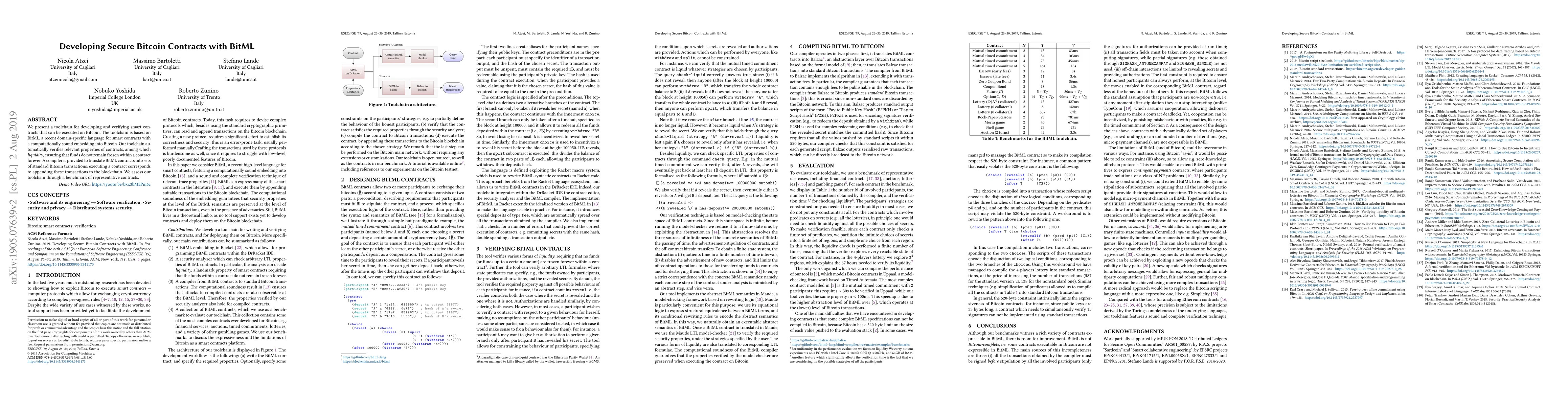 This paper introduces a toolchain for creating and verifying Bitcoin smart contracts using BitML, ensuring liquidity and automatic verification of contract properties. The toolchain translates BitML contracts into Bitcoin transactions, validated through a benchmark of representative contracts.