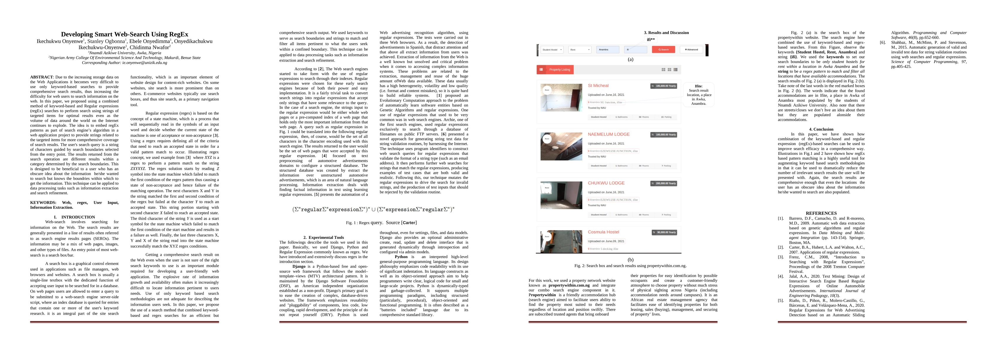 Due to the increasing storage data on Web Applications, it becomes very difficult to use only keyword-based searches to provide comprehensive search results, thus increasing the difficulty for web users to search information on the web. In this paper, we proposed using a combined method of keyword-based and Regular expressions (regEx) searches to perform a search using strings of targeted items for optimal results even as the volume of data around the world on the Internet continues to explode. The idea is to embed regEx patterns as part of the search engine's algorithm in a web application project to provide strings related to the targeted items for more comprehensive coverage of search results. The user's search query is a string of characters guided by search boundaries selected from the entry point. The results returned from the search operation are different results within a category determined by the search boundaries. This is designed to be beneficial to a user who has an obscure idea about the information he/she wanted to search but knows the boundaries within which to get the information. This technique can be applied to data processing tasks such as information extraction and search refinement.