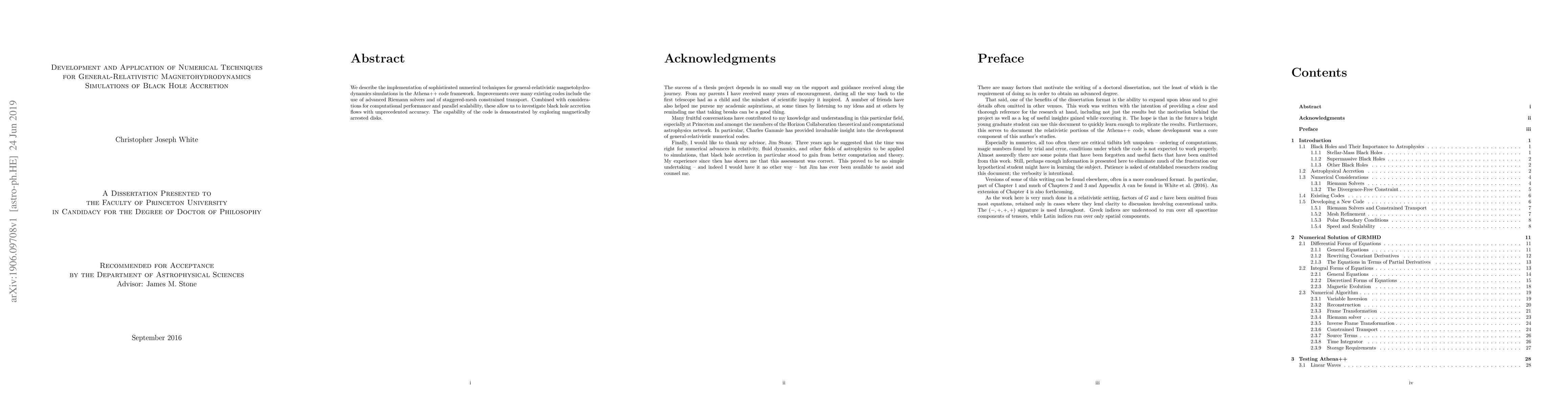 This paper details the development of advanced numerical techniques within the Athena++ framework for simulating general-relativistic magnetohydrodynamics, focusing on black hole accretion flows. The new methods, including improved Riemann solvers and staggered-mesh constrained transport, enhance accuracy and computational efficiency, as demonstrated through simulations of magnetically arrested disks.