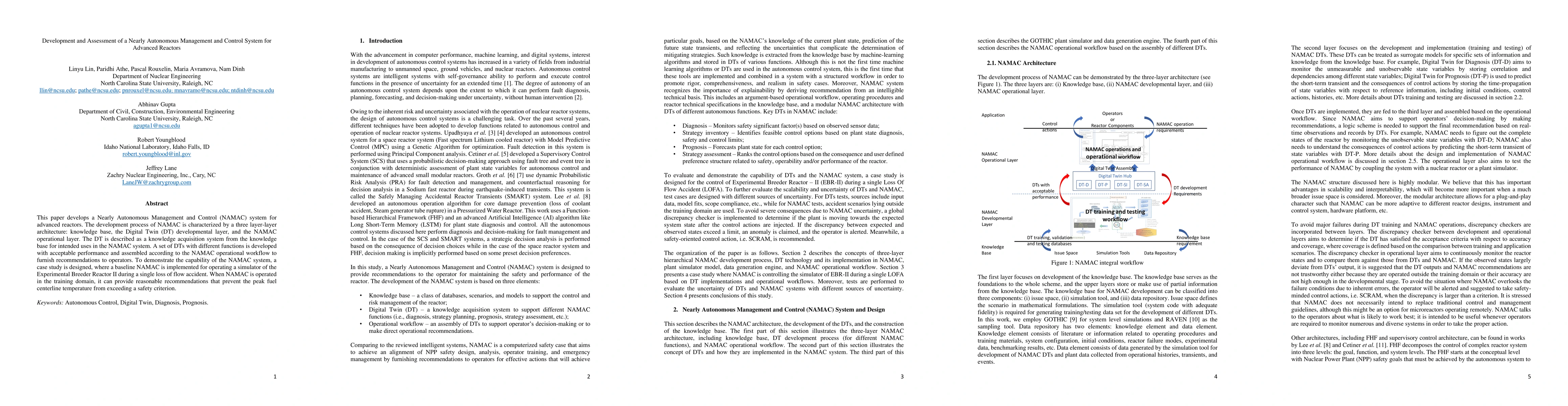 This paper develops a Nearly Autonomous Management and Control (NAMAC) system for advanced reactors using a three-layer architecture, including a Digital Twin for knowledge acquisition. A case study demonstrates the system's effectiveness in managing a loss of flow accident in a reactor simulator, providing safe operational recommendations.