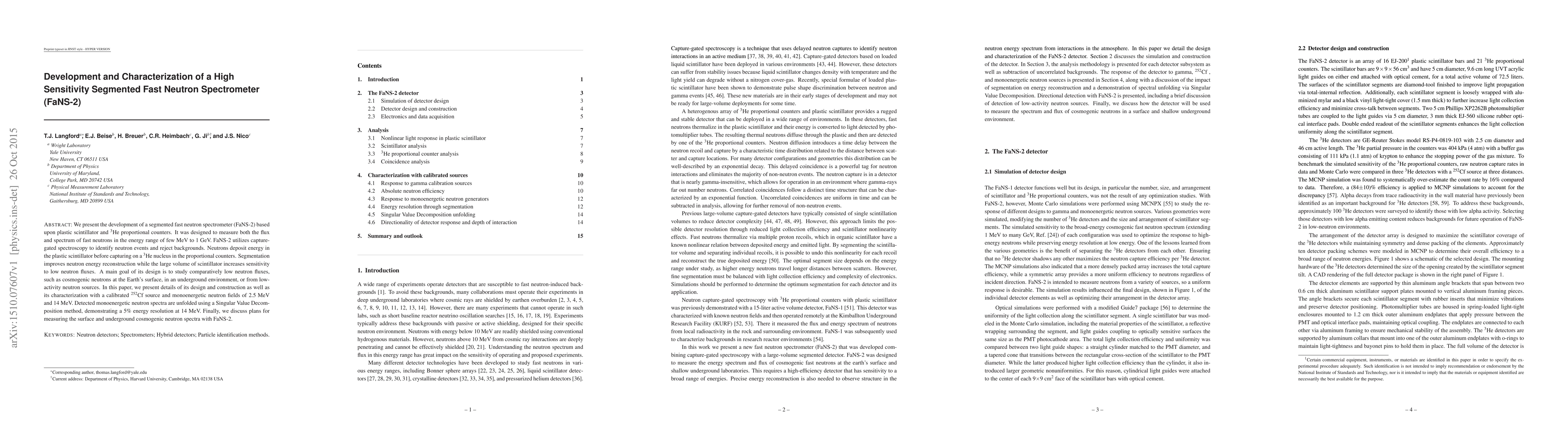 We present the development of a segmented fast neutron spectrometer (FaNS-2) based upon plastic scintillator and $^3$He proportional counters. It was designed to measure both the flux and spectrum of fast neutrons in the energy range of few MeV to 1 GeV. FaNS-2 utilizes capture-gated spectroscopy to identify neutron events and reject backgrounds. Neutrons deposit energy in the plastic scintillator before capturing on a $^3$He nucleus in the proportional counters. Segmentation improves neutron energy reconstruction while the large volume of scintillator increases sensitivity to low neutron fluxes. A main goal of its design is to study comparatively low neutron fluxes, such as cosmogenic neutrons at the Earth's surface, in an underground environment, or from low-activity neutron sources. In this paper, we present details of its design and construction as well as its characterization with a calibrated $^{252}$Cf source and monoenergetic neutron fields of 2.5 MeV and 14 MeV. Detected monoenergetic neutron spectra are unfolded using a Singular Value Decomposition method, demonstrating a 5% energy resolution at 14 MeV. Finally, we discuss plans for measuring the surface and underground cosmogenic neutron spectra with FaNS-2.
