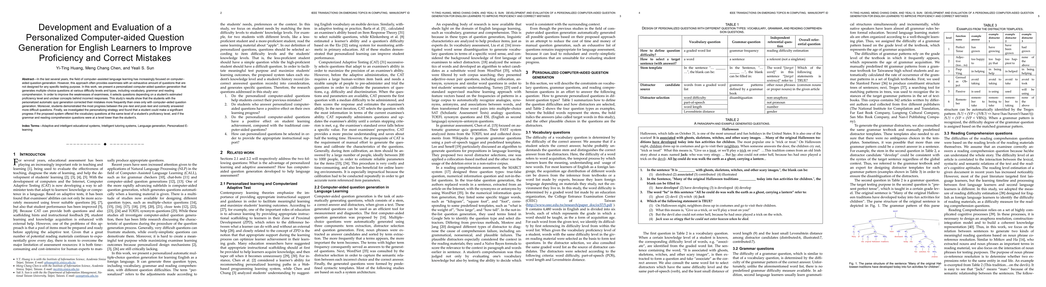 This paper develops a personalized computer-aided question generation system for English learners, which tailors multiple-choice questions to individual proficiency levels and incorrect responses. Results indicate that learners using this system showed greater progress and corrected mistakes more effectively than those using a generic system.